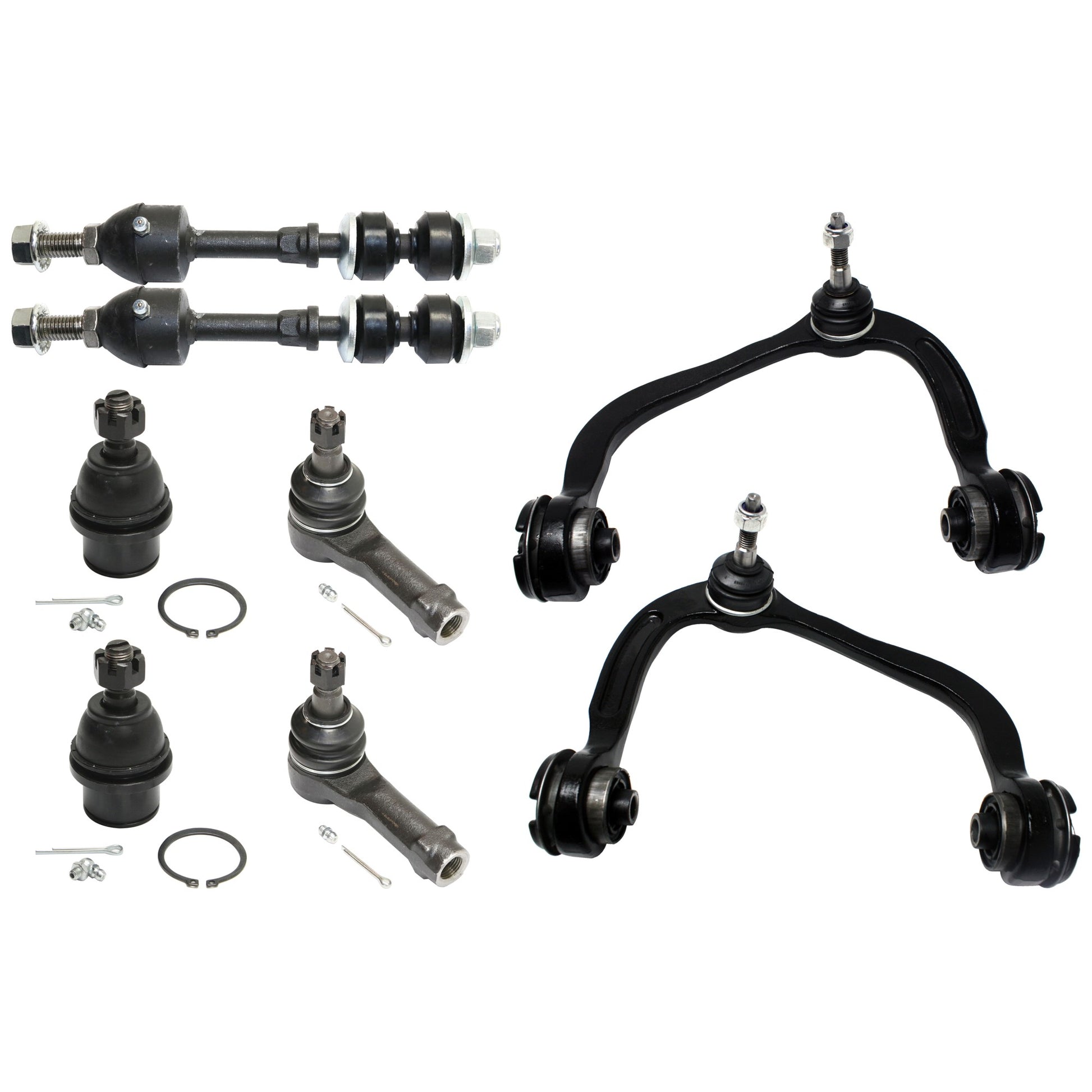 8-Piece Kit Front, Driver and Passenger Side, Upper Control Arm Kit, Includes (2) Control Arm, (2) Ball Joint, (2) Tie Rod End and (2) Sway Bar Link