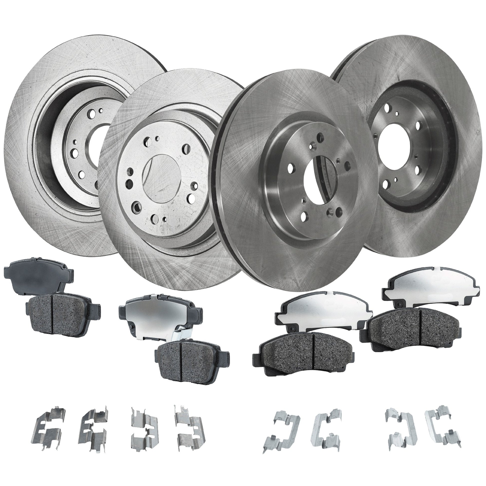 4-Wheel Set Front and Rear Brake Disc and Pad Kit, Plain Surface 5 Lugs Front-320.04 mm/Rear-334.01 mm Ceramic Pro-Line Series, Includes (4) Brake Disc and (2) Brake Pad Set