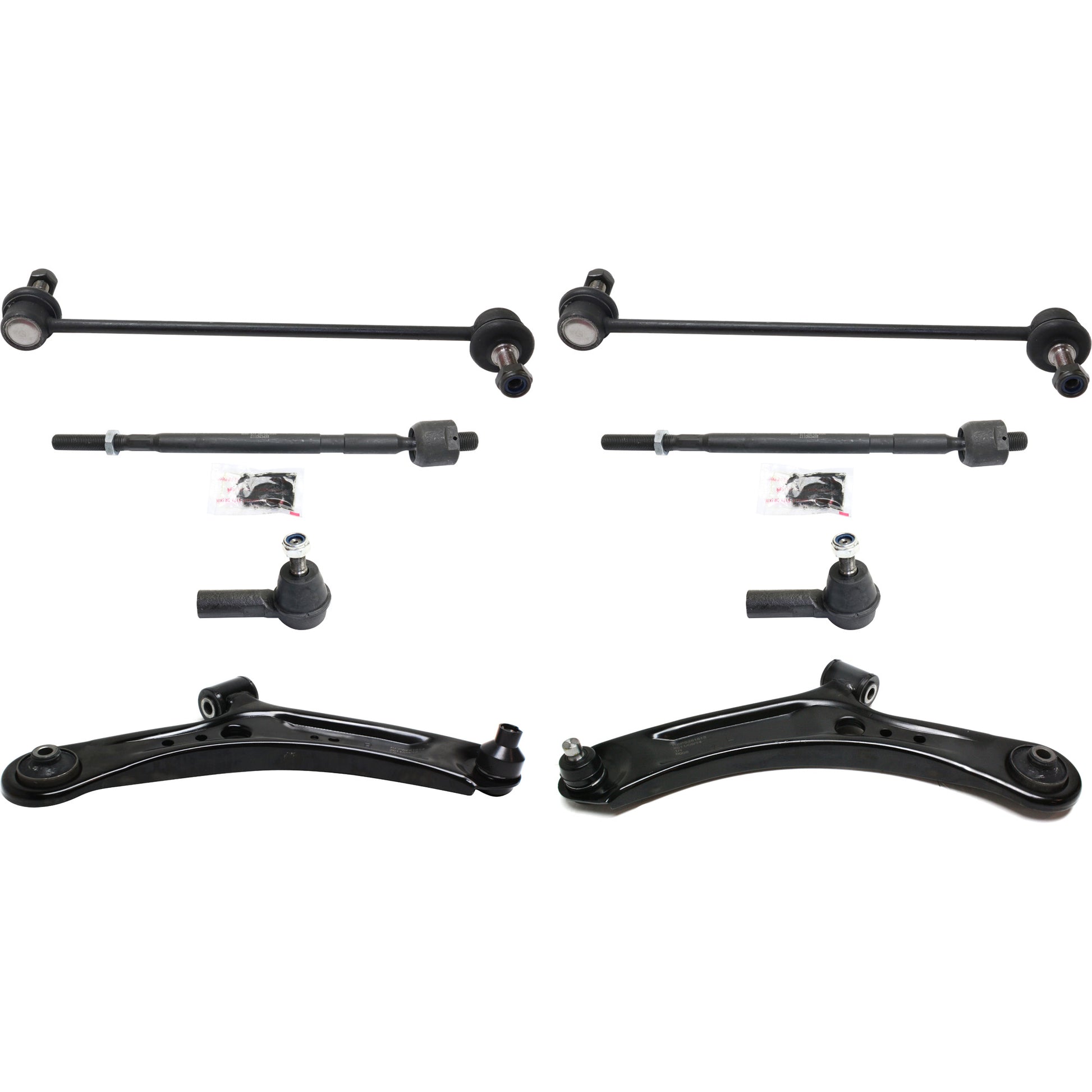 8-Piece Kit Front, Driver and Passenger Side, Lower Control Arm Kit, Includes (4) Tie Rod End, (2) Control Arm and (2) Sway Bar Link