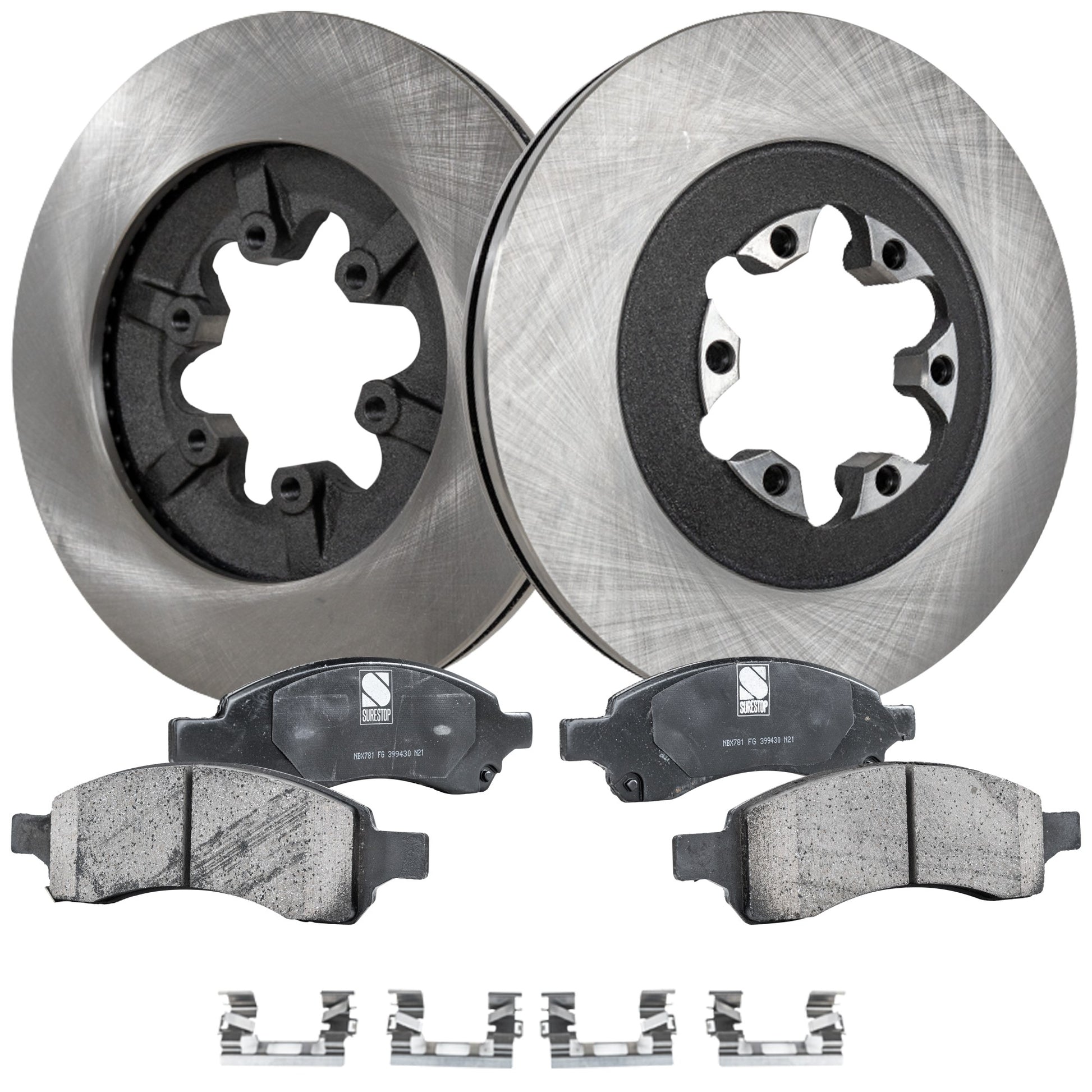 2-Wheel Set Front Brake Disc and Pad Kit, Plain Surface 6 Lugs 297.94 mm Ceramic Pro-Line Series, Includes (1) Brake Pad Set and (2) Brake Disc