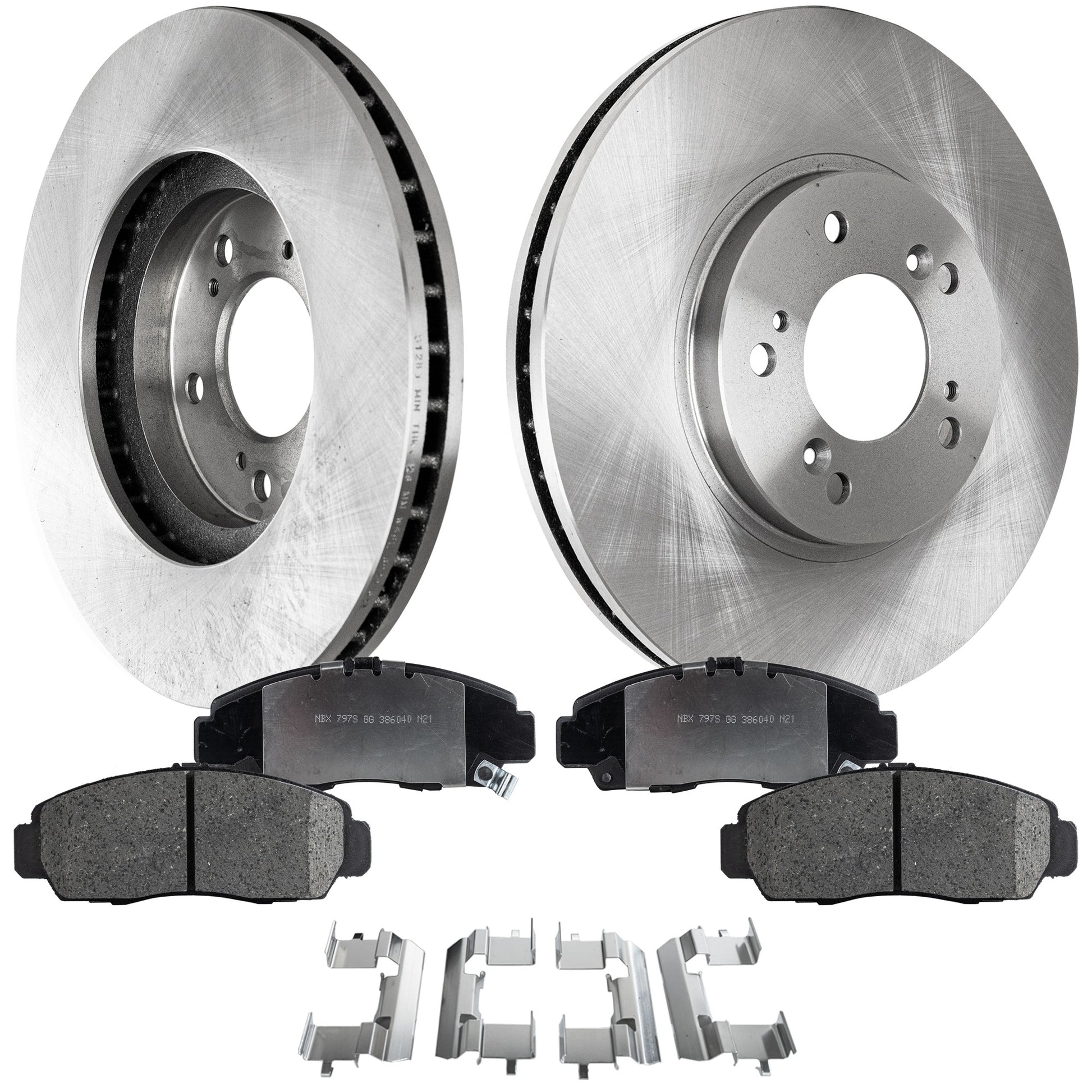 2-Wheel Set Front Brake Disc and Pad Kit, Plain Surface 5 Lugs 299.97 mm Ceramic Pro-Line Series, Includes (2) Brake Disc and (1) Brake Pad Set