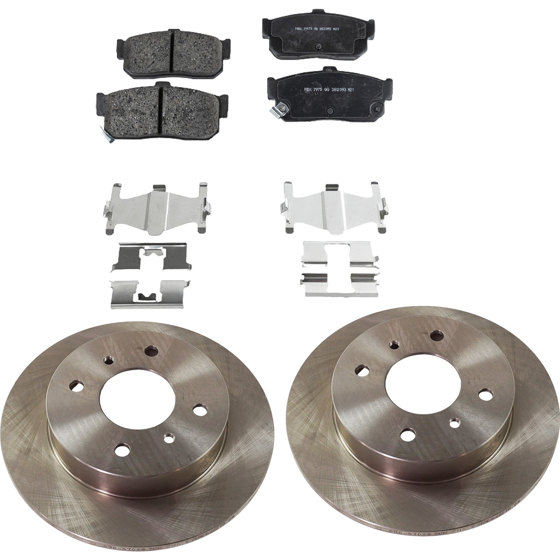2-Wheel Set Rear Brake Disc and Pad Kit, Plain Surface 4 Lugs 258.06 mm Ceramic Pro-Line Series, Includes (2) Brake Disc and (1) Brake Pad Set
