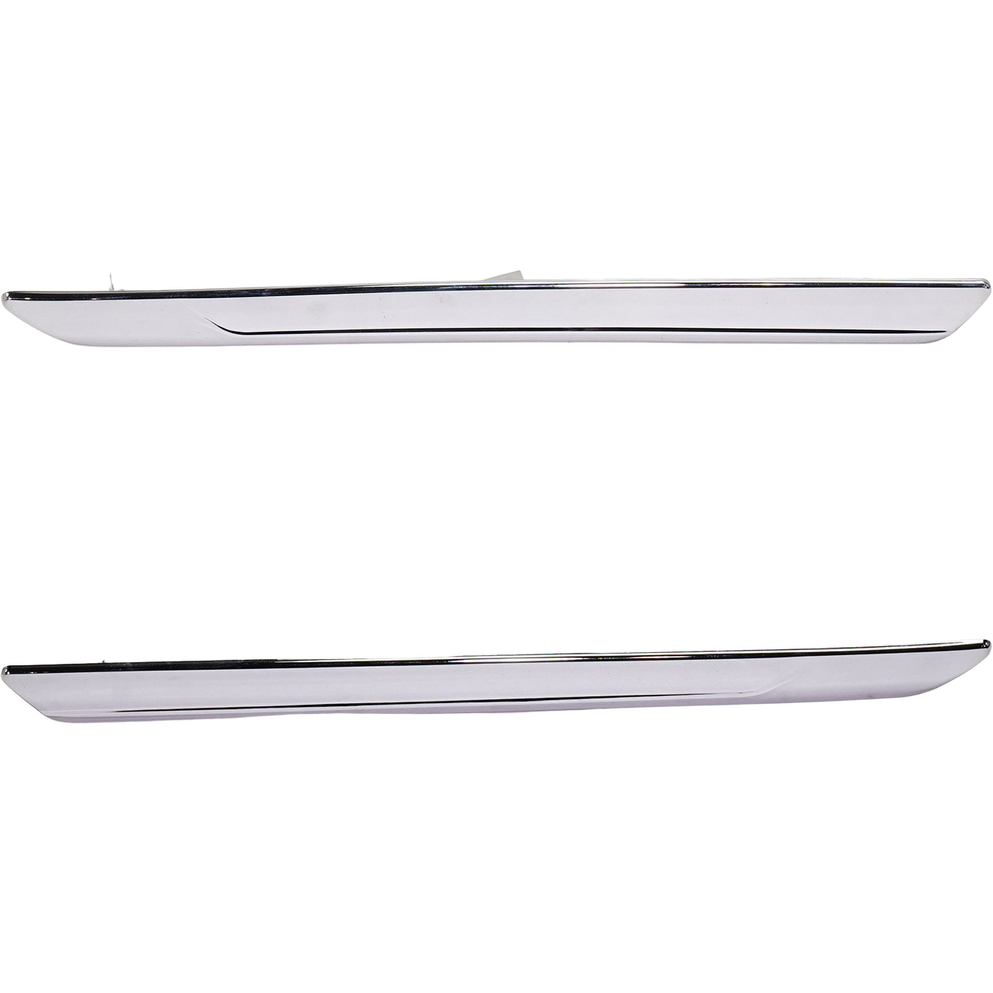 Rear, Driver and Passenger Side Bumper Trims, Chrome, Mounted on Side Bumper Molding