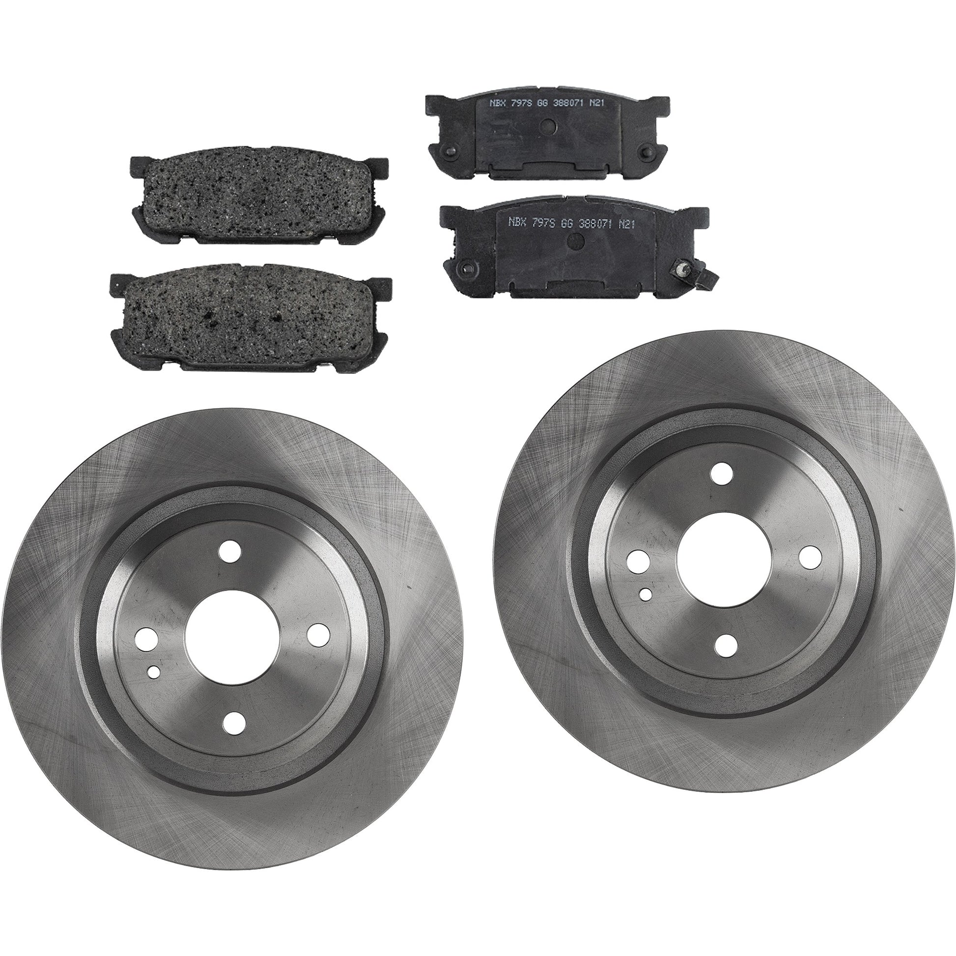 2-Wheel Set Rear Brake Disc and Pad Kit, Plain Surface 4 Lugs 275.59 mm Ceramic Pro-Line Series, Includes (2) Brake Disc and (1) Brake Pad Set