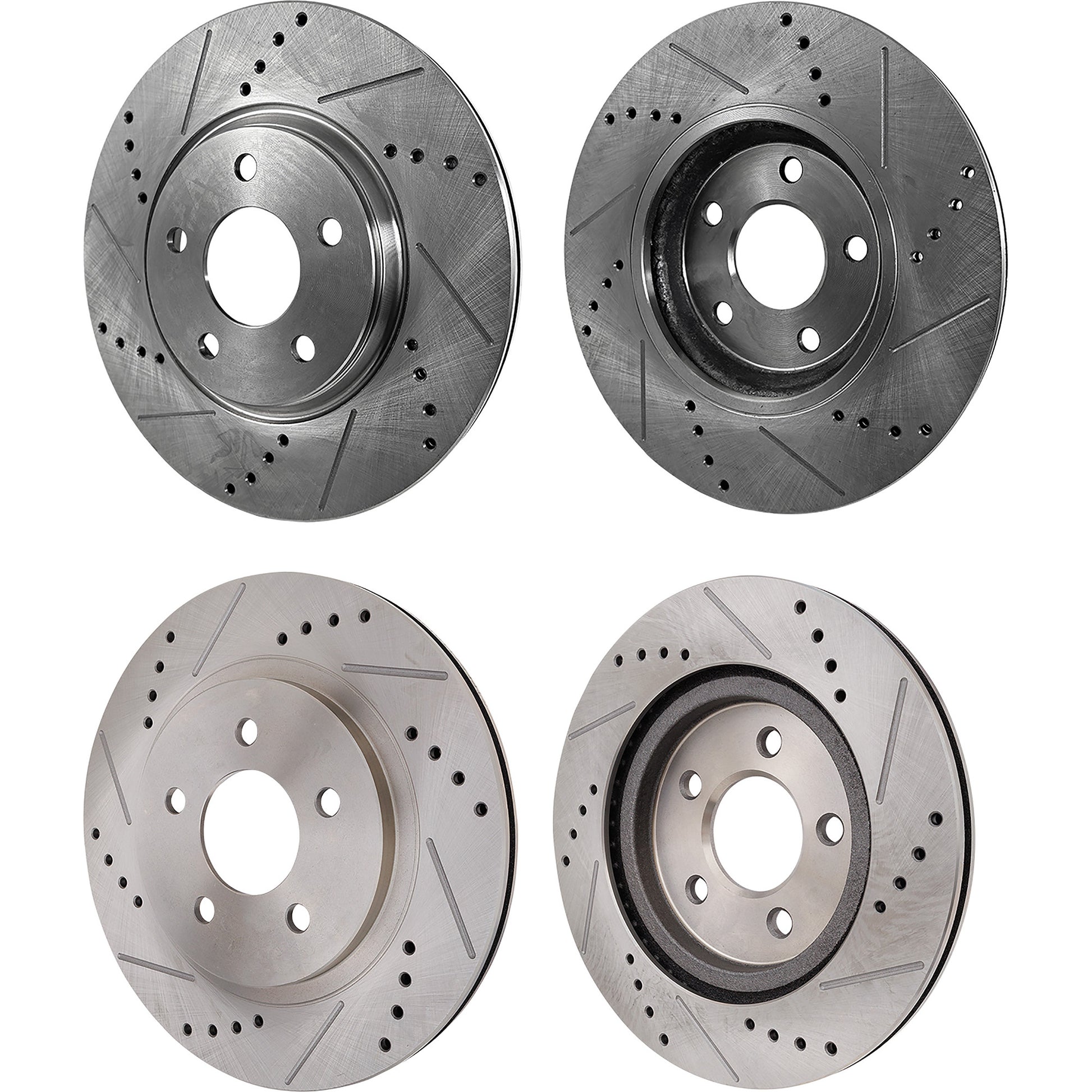 Front and Rear Brake Disc, 4-Wheel Set, Cross-drilled and Slotted, Vented, 5 Lugs, Pro-Line Series
