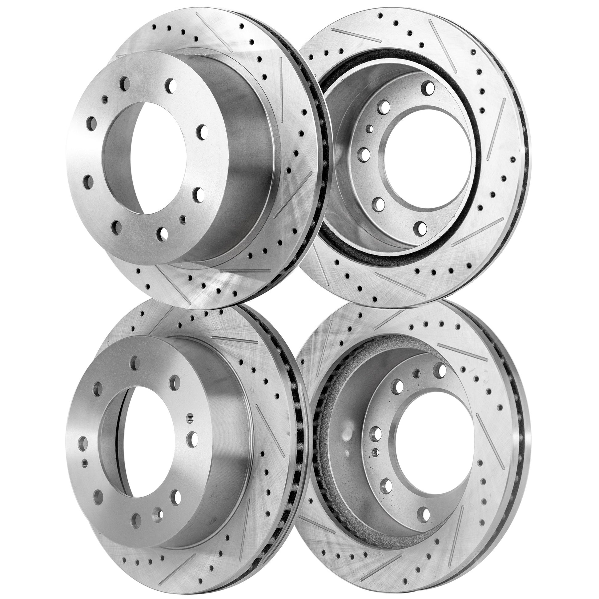 Front and Rear Brake Disc, 4-Wheel Set, Cross-drilled and Slotted, Vented, For Models with Single Rear Wheels, Pro-Line Series