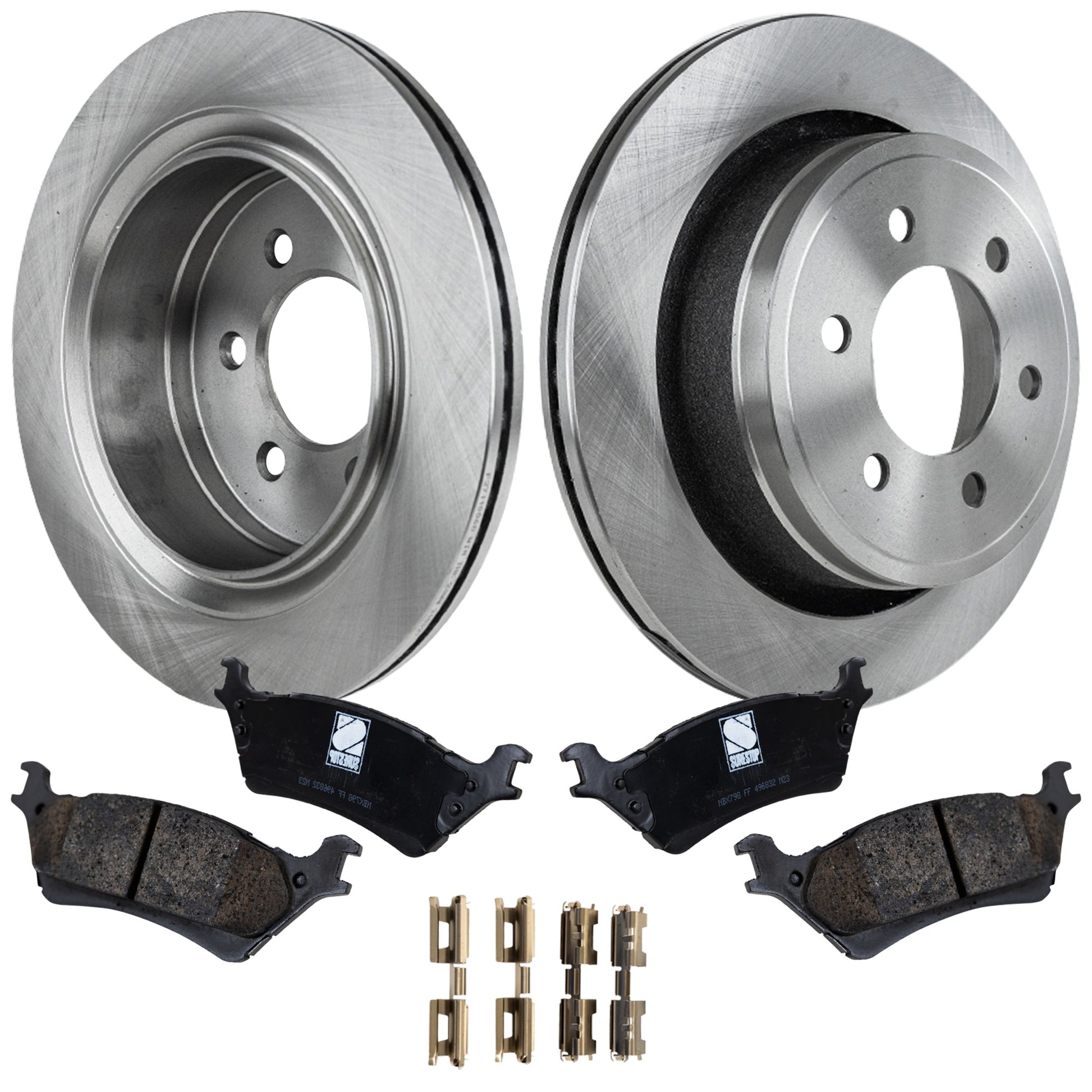 2-Wheel Set Rear Brake Disc and Pad Kit, Plain Surface 6 Lugs 347.98 mm Ceramic Pro-Line Series, Includes (1) Brake Pad Set and (2) Brake Disc