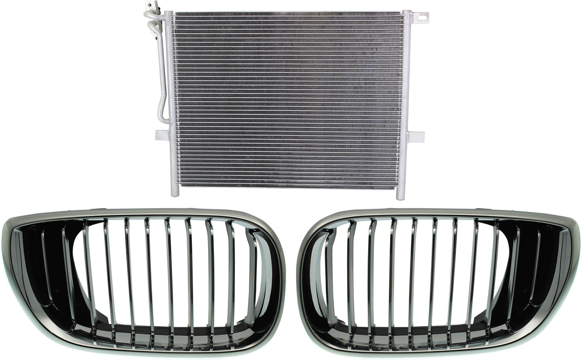 3-Piece Kit Driver and Passenger Side Grille Chrome, Includes (1) A/C Condenser and (2) Grille Assembly
