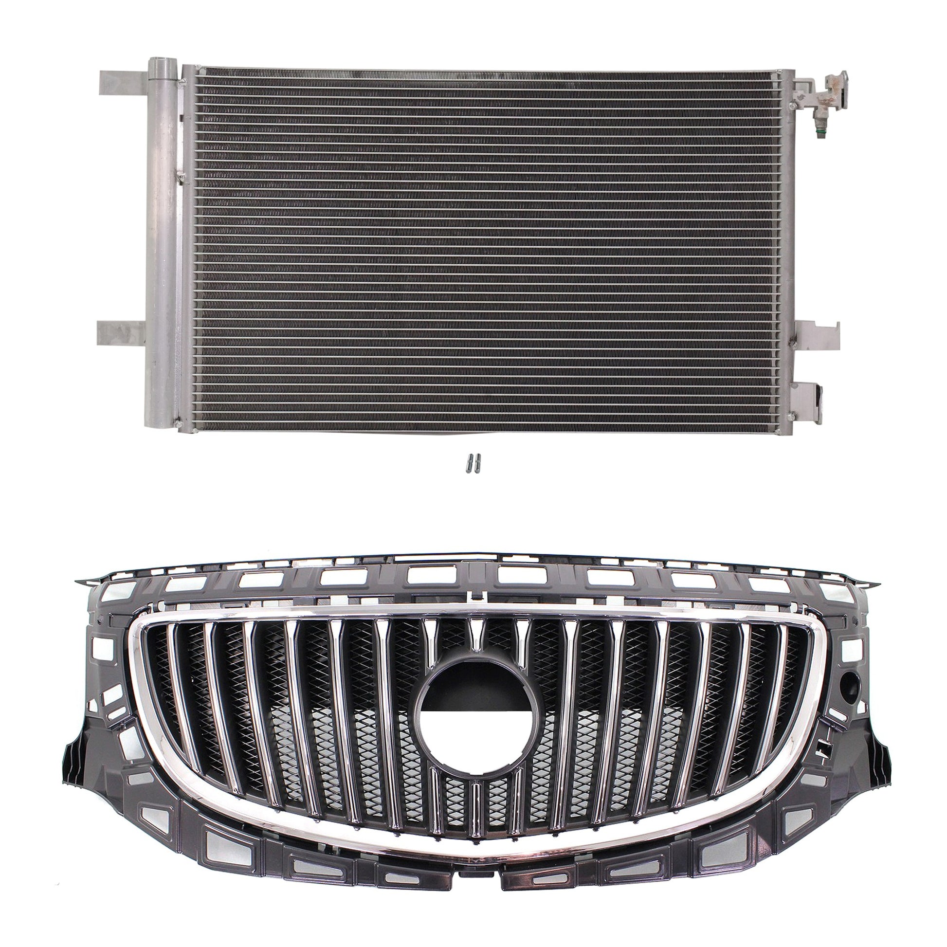 2-Piece Kit, Grille Chrome Shell with Painted Black Insert, Includes (1) A/C Condenser and (1) Grille Assembly