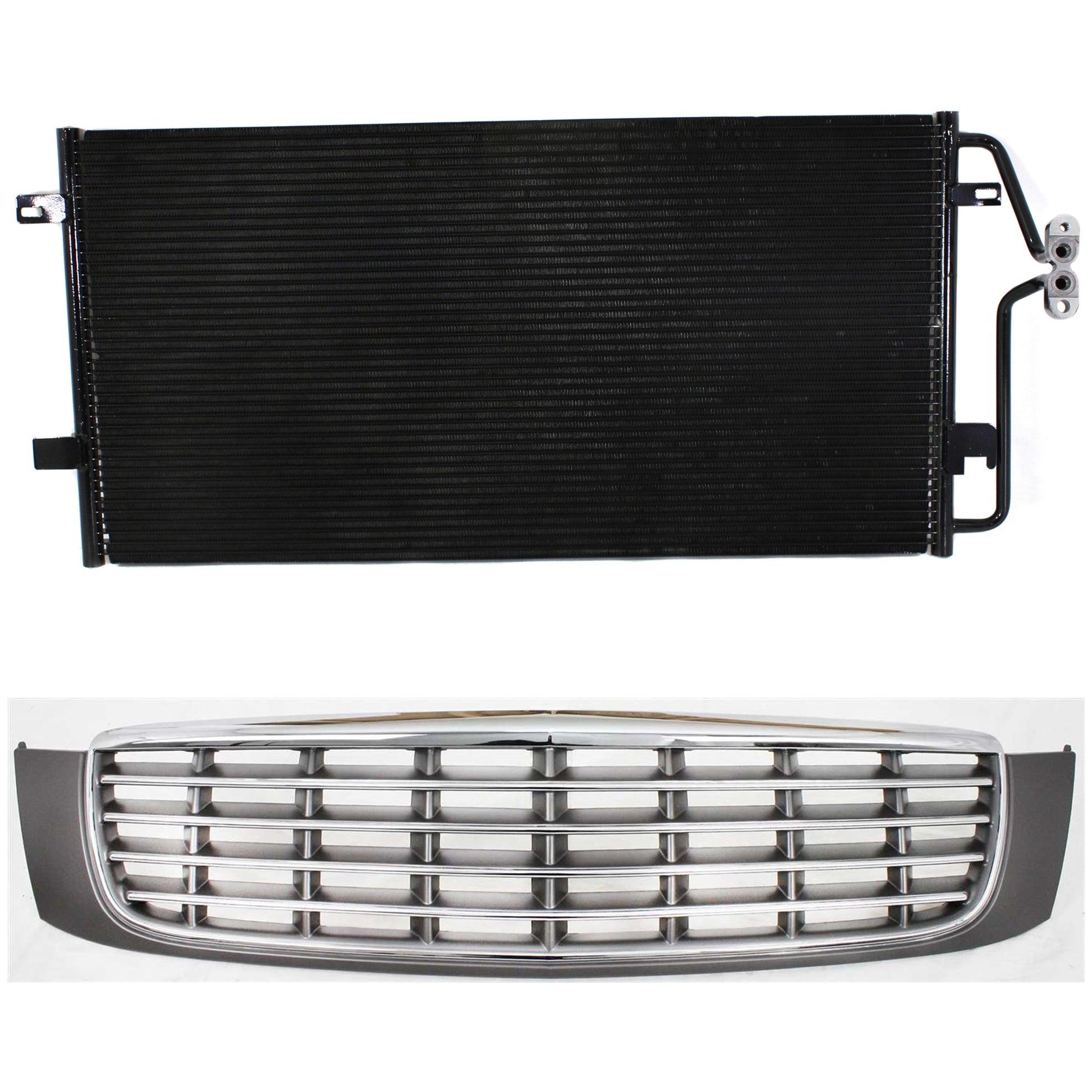 2-Piece Kit, Grille Chrome Shell with Painted Gray Insert, Includes (1) A/C Condenser and (1) Grille Assembly