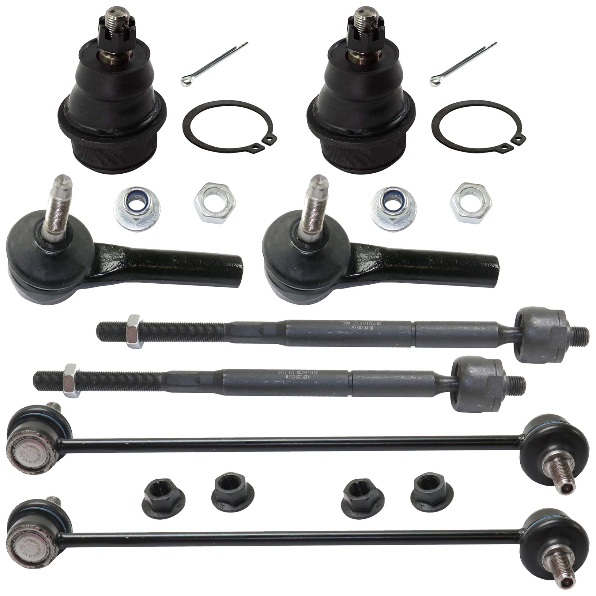 8-Piece Kit Front, Driver and Passenger Side, Inner and Outer Tie Rod End, Includes (4) Tie Rod End, (2) Sway Bar Link and (2) Ball Joint