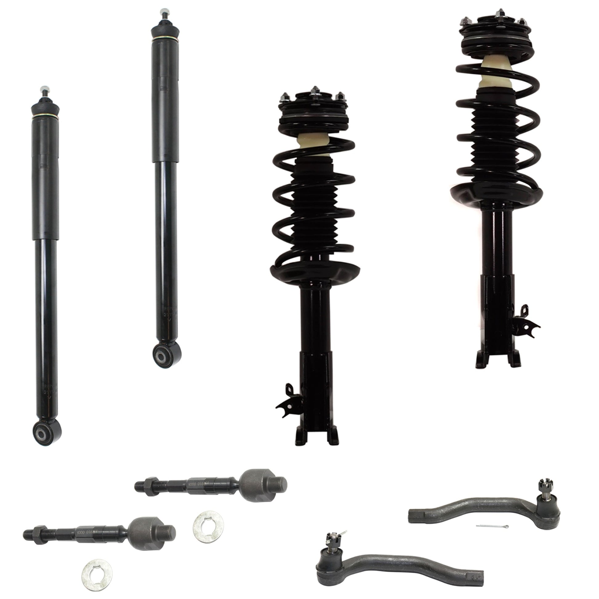 12-Piece Kit Rear, Driver and Passenger Side Shock and Fully Loaded Strut, Sedan, Includes (2) Ball Joint, (4) Tie Rod End, (2) Sway Bar Link and (4) Shock Absorber and Strut Assembly