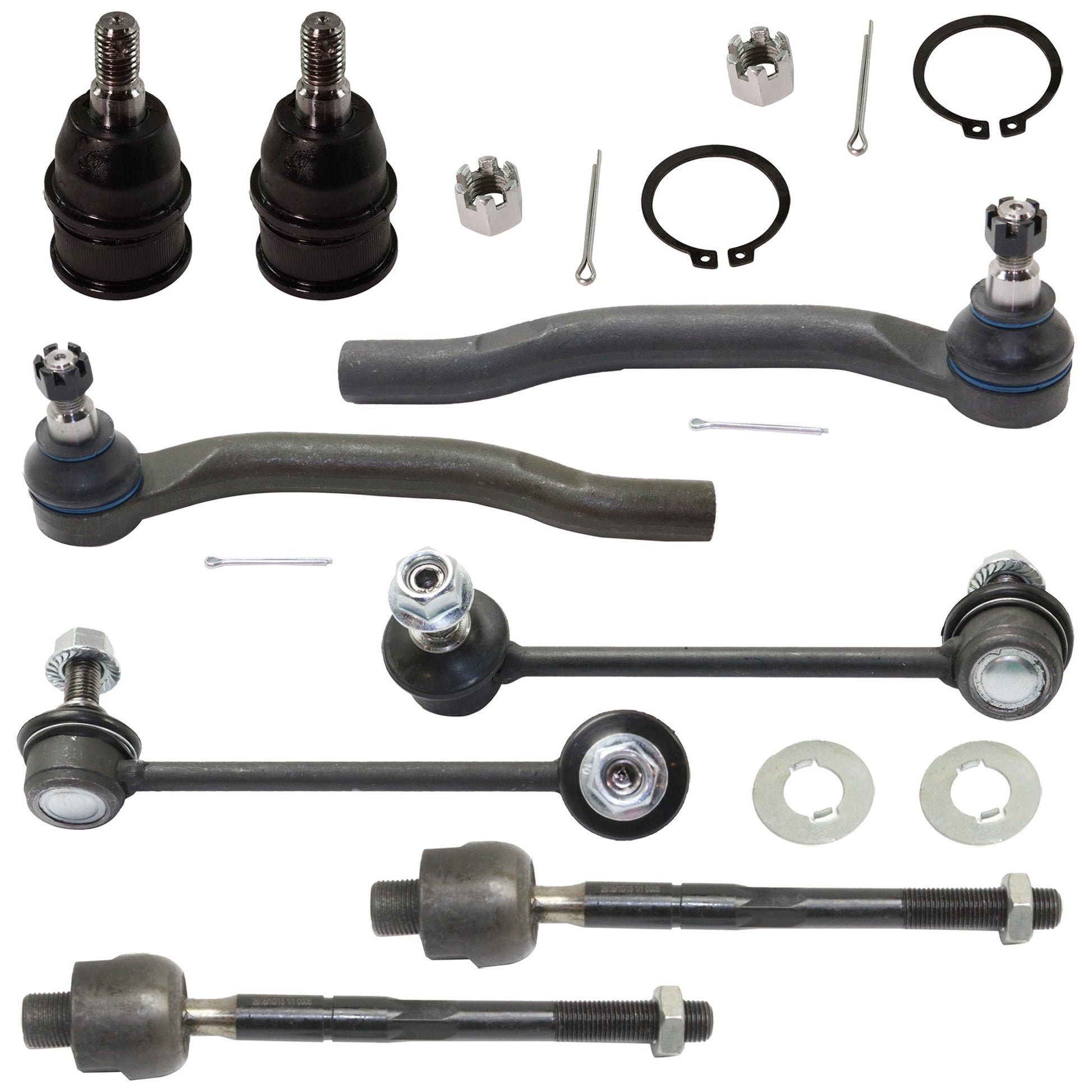 8-Piece Kit Front, Driver and Passenger Side, Outer Tie Rod End, Includes (4) Tie Rod End, (2) Ball Joint and (2) Sway Bar Link