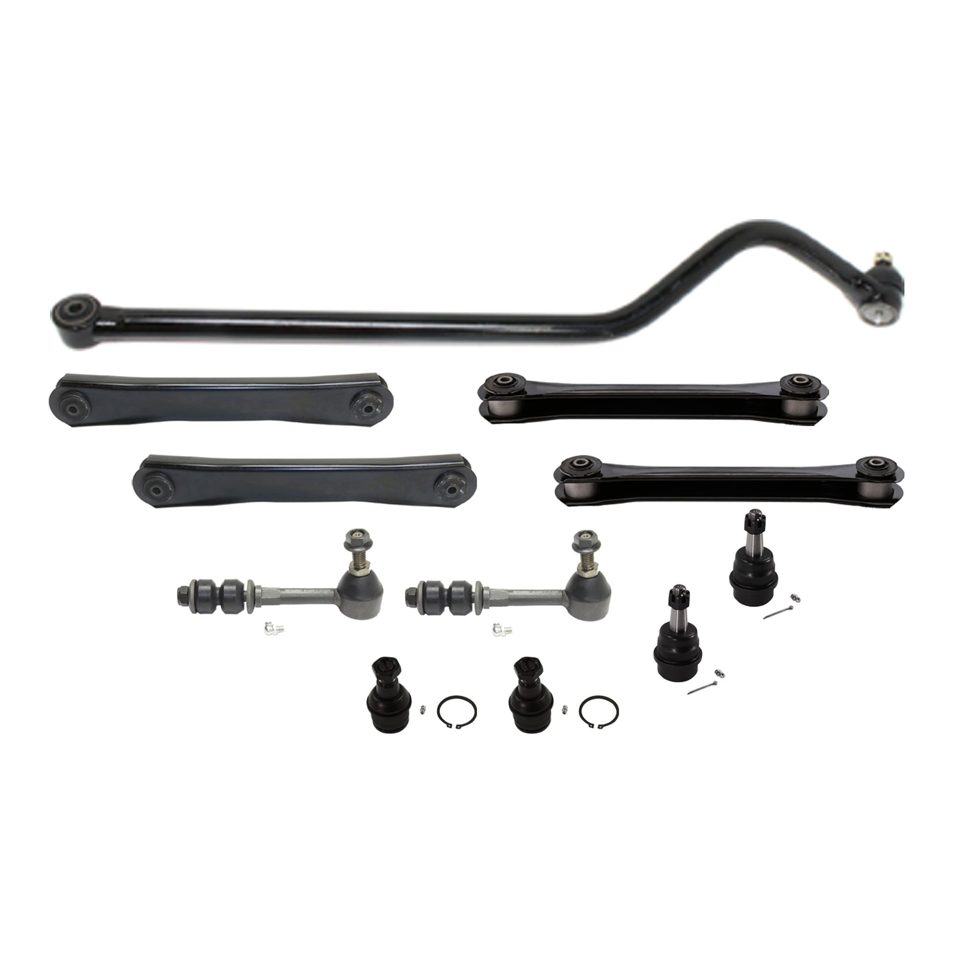 11-Piece Kit Track Bar - Direct Fit, 11-Piece Kit, Includes (1) Track Bar, (4) Control Arm, (4) Ball Joint and (2) Sway Bar Link