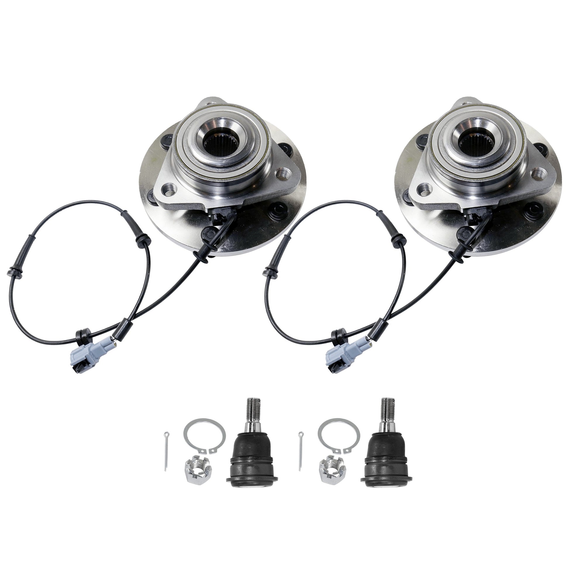 2-Wheel Set Front, Driver and Passenger Side Wheel Hub, 6 Lugs, With Bearing, With Sensor, 5.6L, 8Cyl, Includes (2) Ball Joint and (2) Wheel Hub