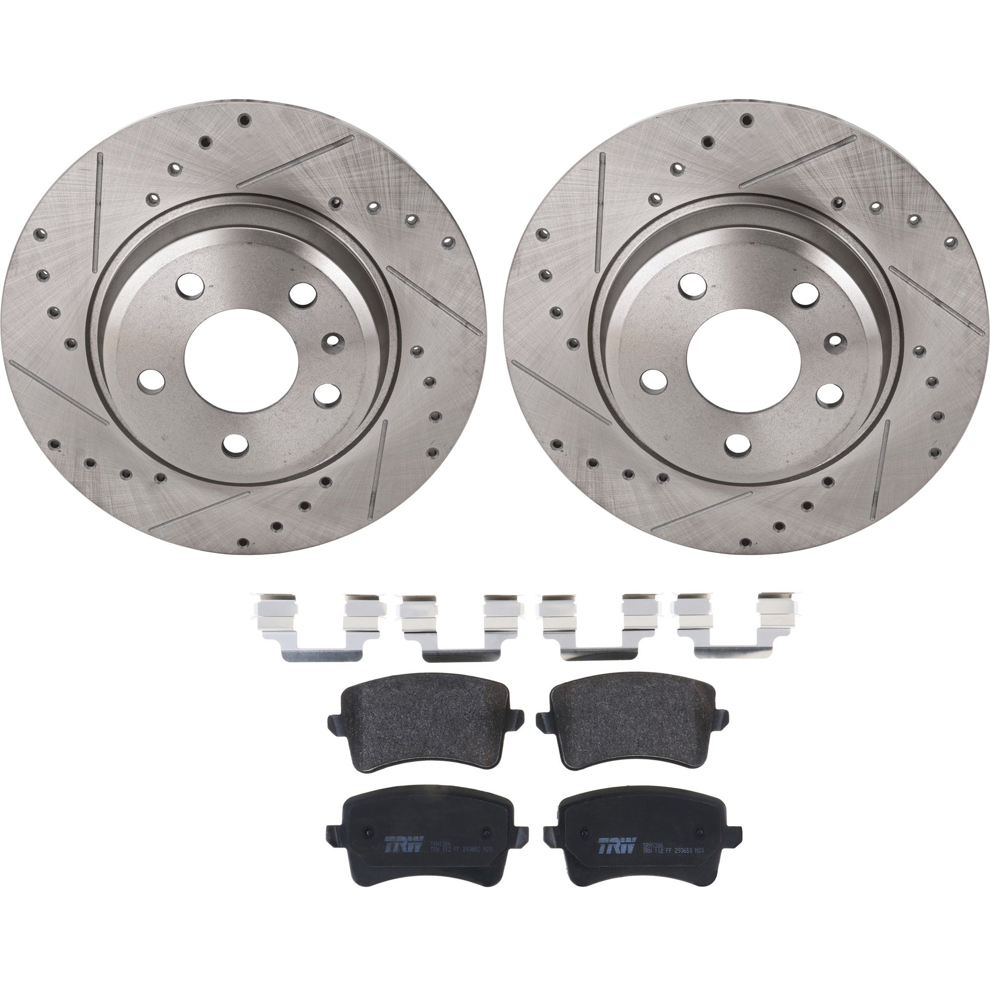 KIT-062924-219 2-Wheel Set Rear Brake Disc and Pad Kit, Cross-drilled and Slotted 5 Lugs 299.97 mm Semi-metallic, Includes (1) Brake Pad Set and (2) Brake Disc