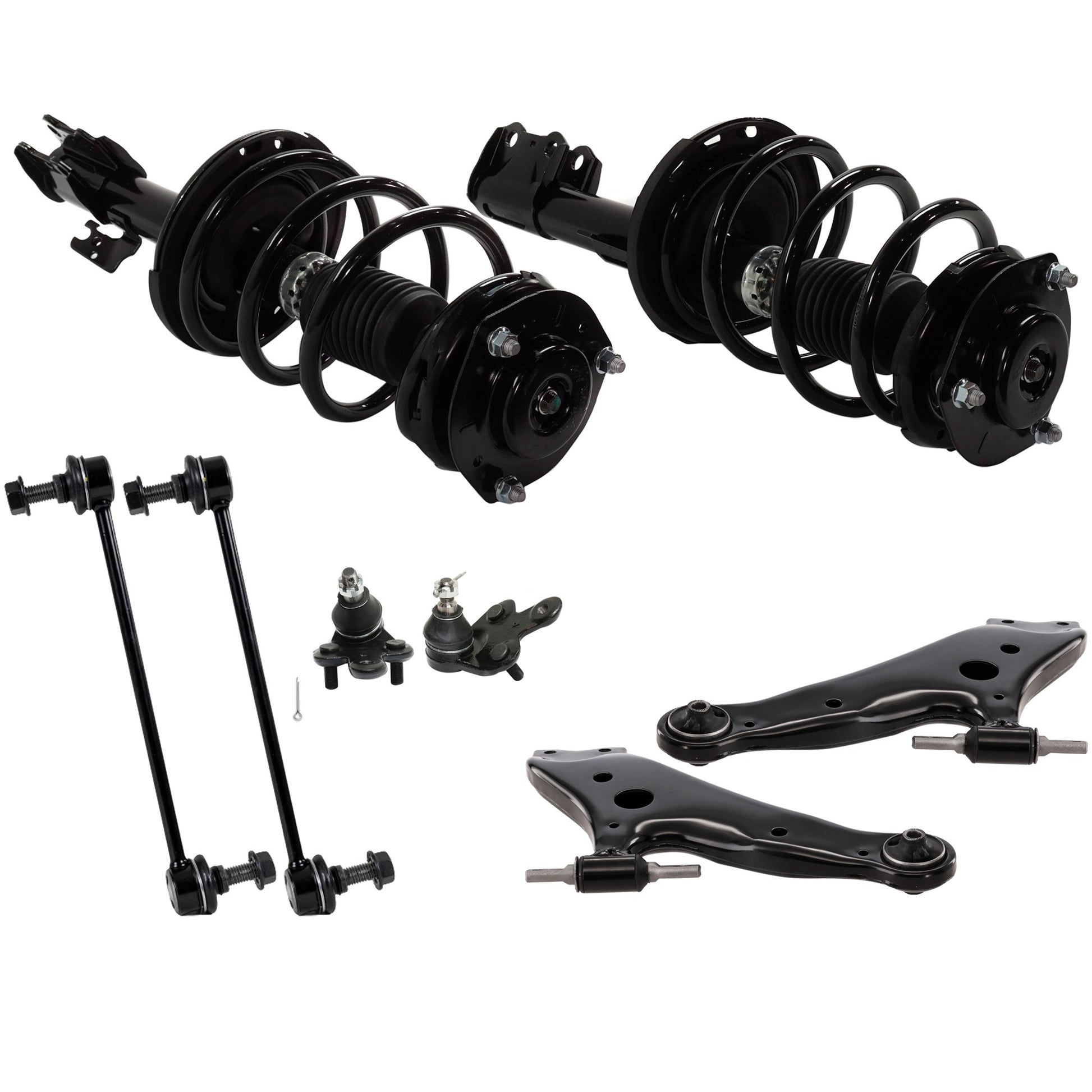 8-Piece Kit Front, Driver and Passenger Side, Lower Fully Loaded Strut, Includes (2) Control Arm, (2) Ball Joint, (2) Sway Bar Link and (2) Shock Absorber and Strut Assembly