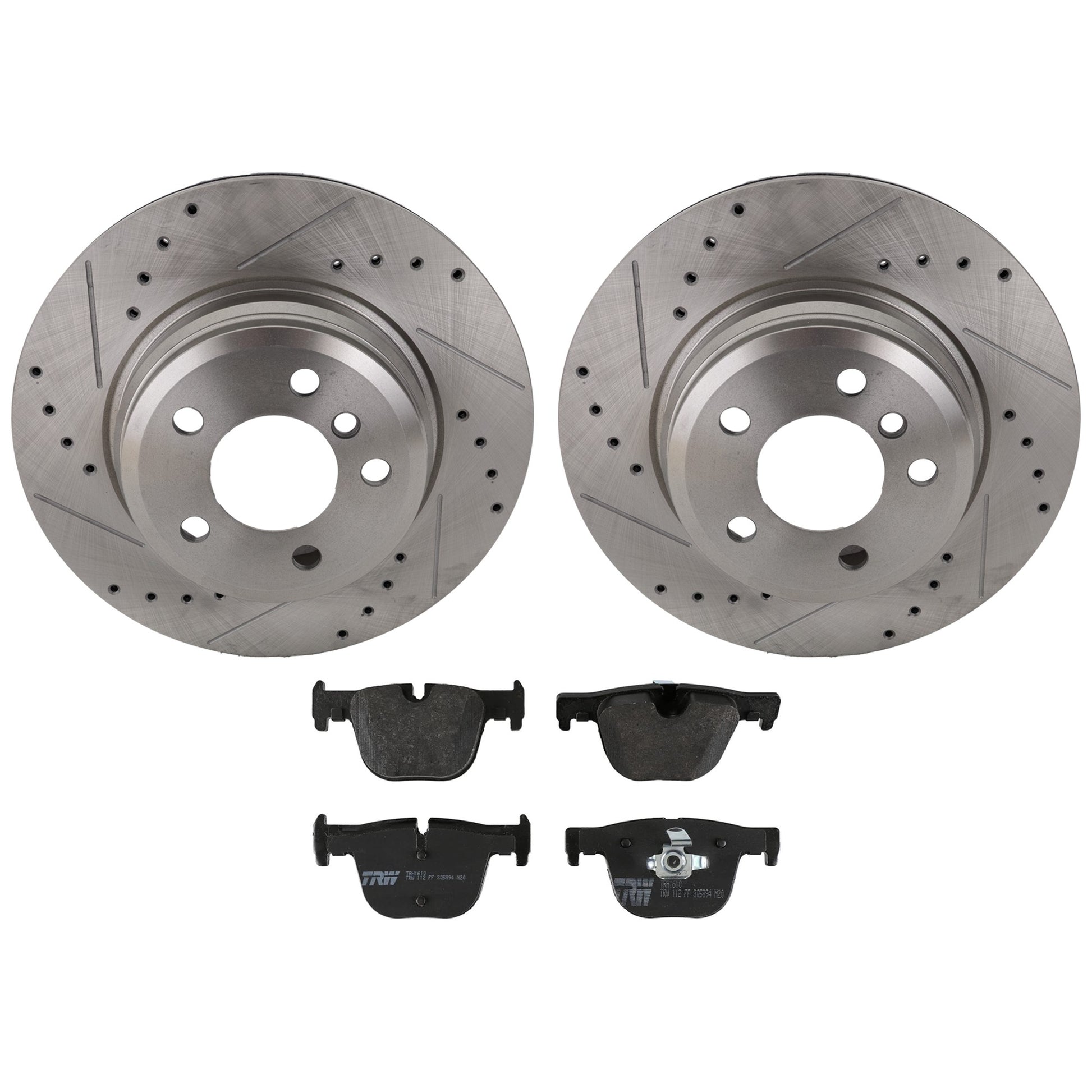 KIT-070624-264 2-Wheel Set Rear Brake Disc and Pad Kit, Cross-drilled and Slotted 5 Lugs 330 mm Semi-metallic, Includes (1) Brake Pad Set and (2) Brake Disc