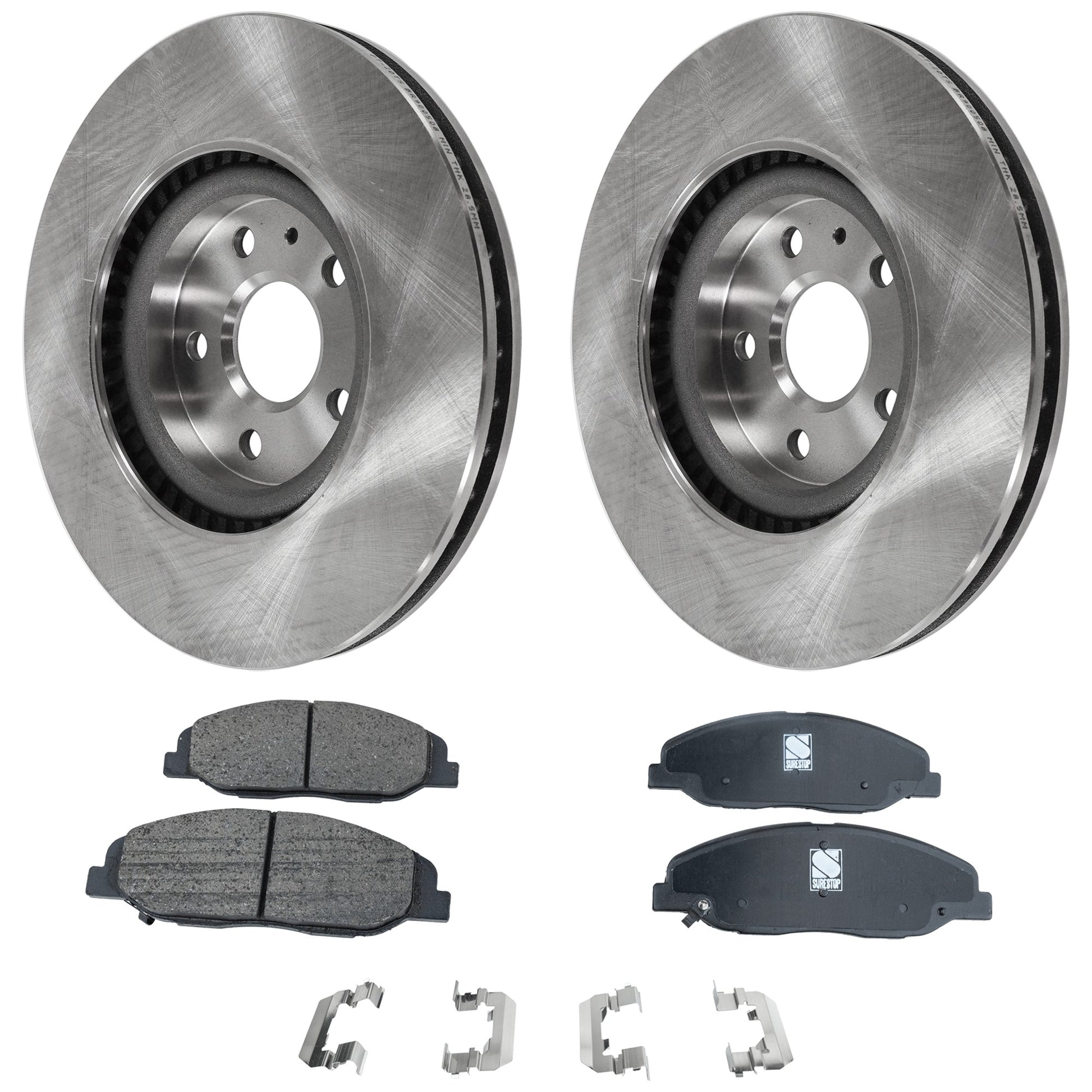 2-Wheel Set Front Brake Disc and Pad Kit, Plain Surface 5 Lugs 344.93 mm, Includes (1) Brake Pad Set and (2) Brake Disc