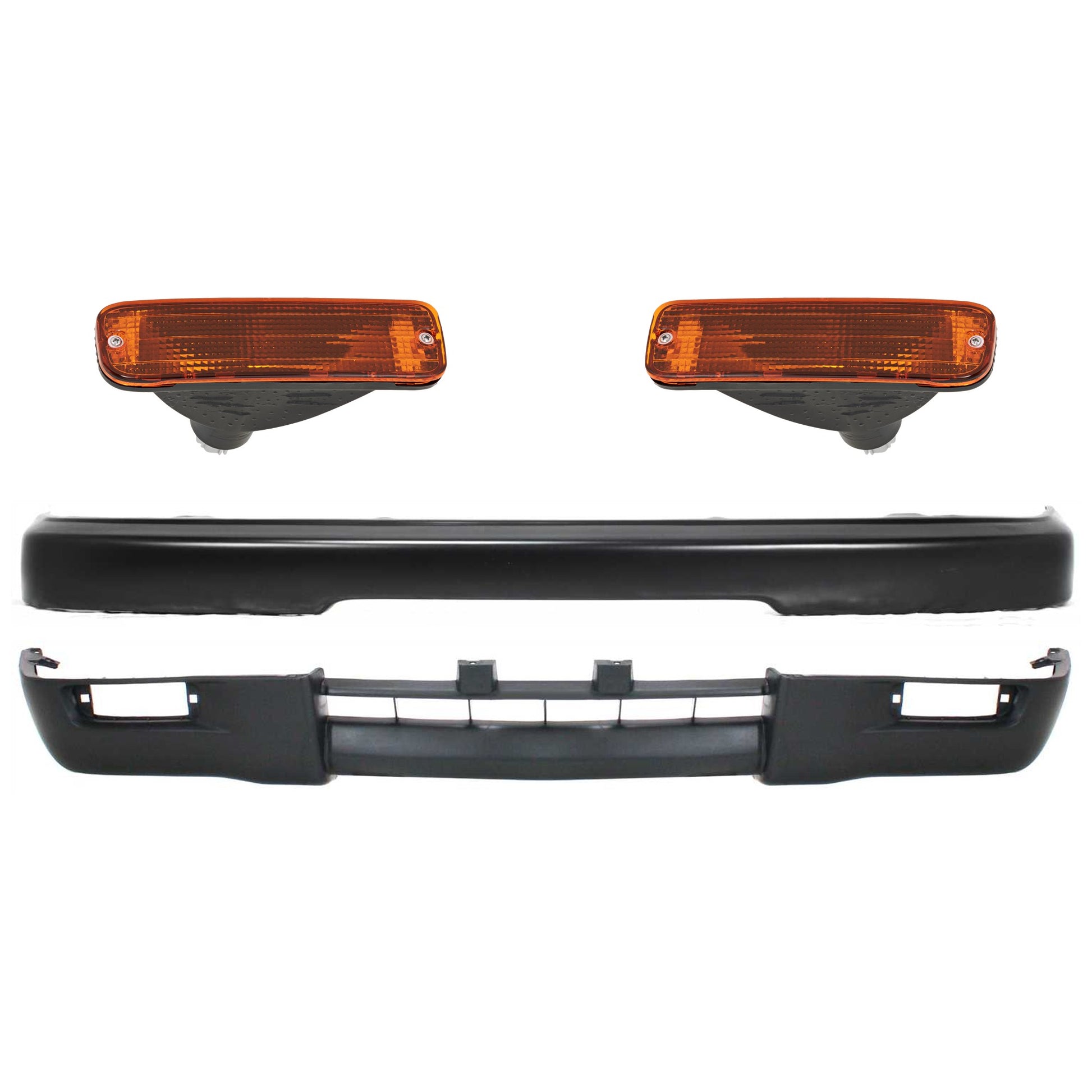 4-Piece Kit, Front Bumper, Painted Black, Includes (1) Bumper, (2) Turn Signal Light, and (1) Valance