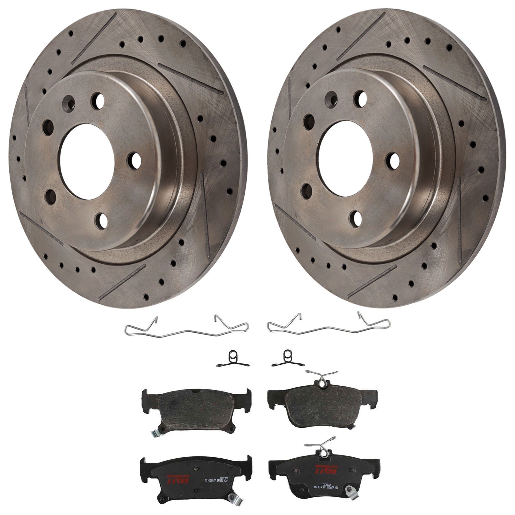 KIT-072524-210 2-Wheel Set Rear Brake Disc and Pad Kit, Cross-drilled and Slotted 5 Lugs 288.04 mm Ceramic, Includes (2) Brake Disc and (1) Brake Pad Set