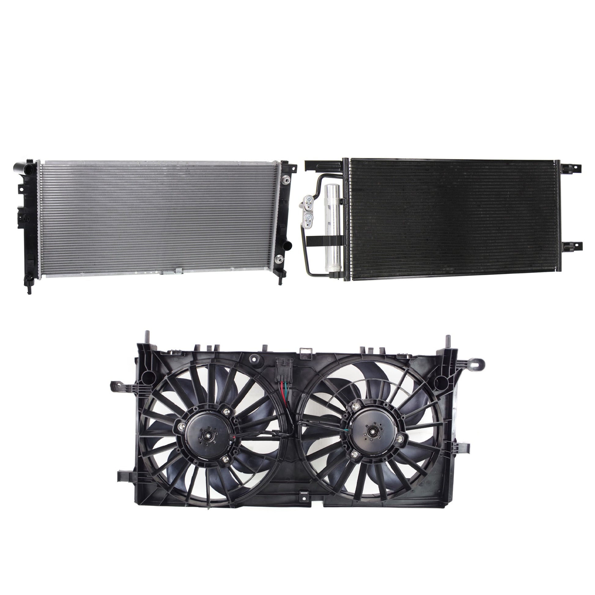 3-Piece Kit A/C Condenser, 3.9L, 6Cyl, Includes (1) A/C Condenser, (1) Cooling Fan Assembly and (1) Radiator