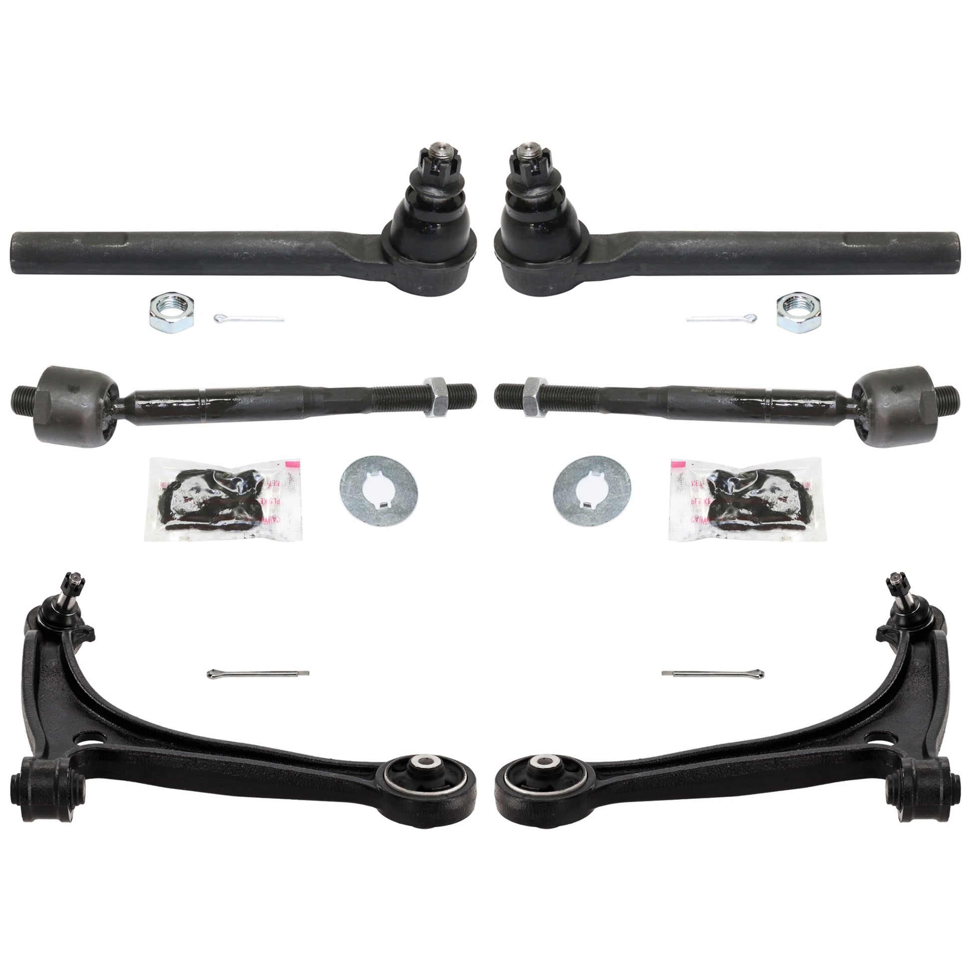 6-Piece Kit Control Arm Includes (2) Control Arm and (4) Tie Rod End
