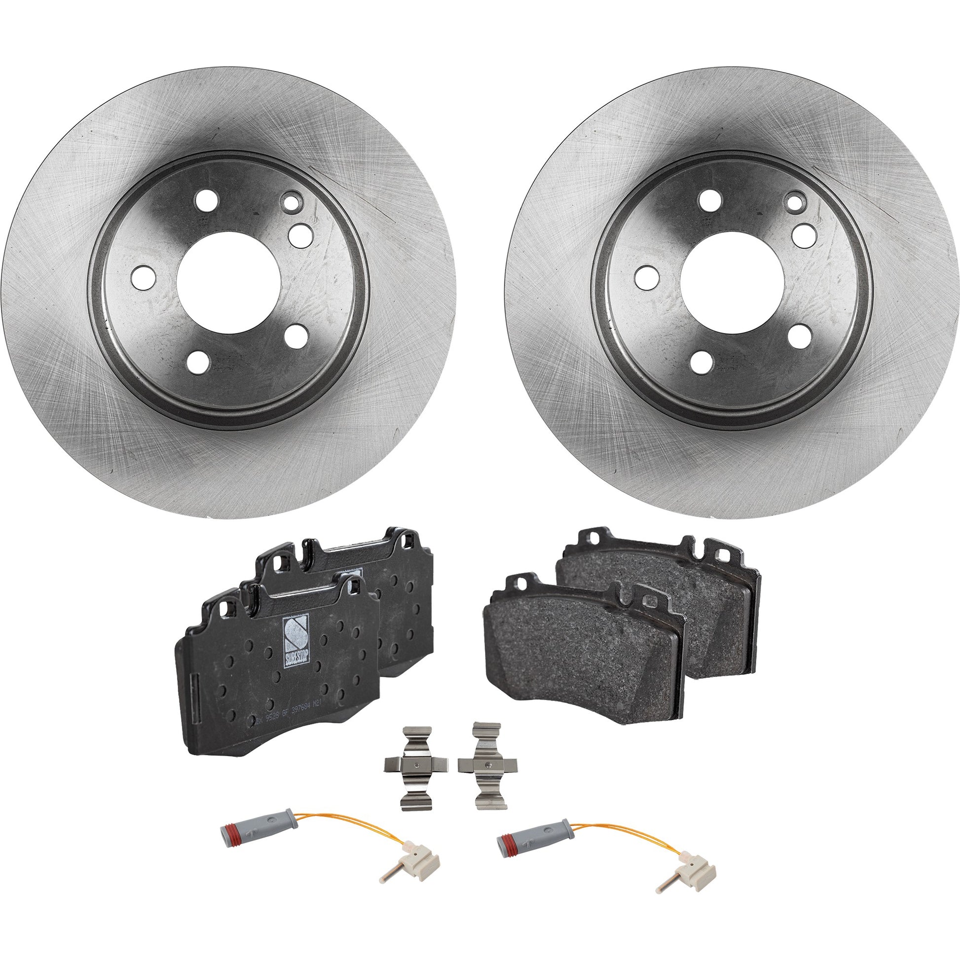 2-Wheel Set Front Brake Disc and Pad Kit, Plain Surface 5 Lugs 311.91 mm Organic, Includes (2) Brake Disc, (1) Brake Pad Set and (2) Brake Pad Sensor