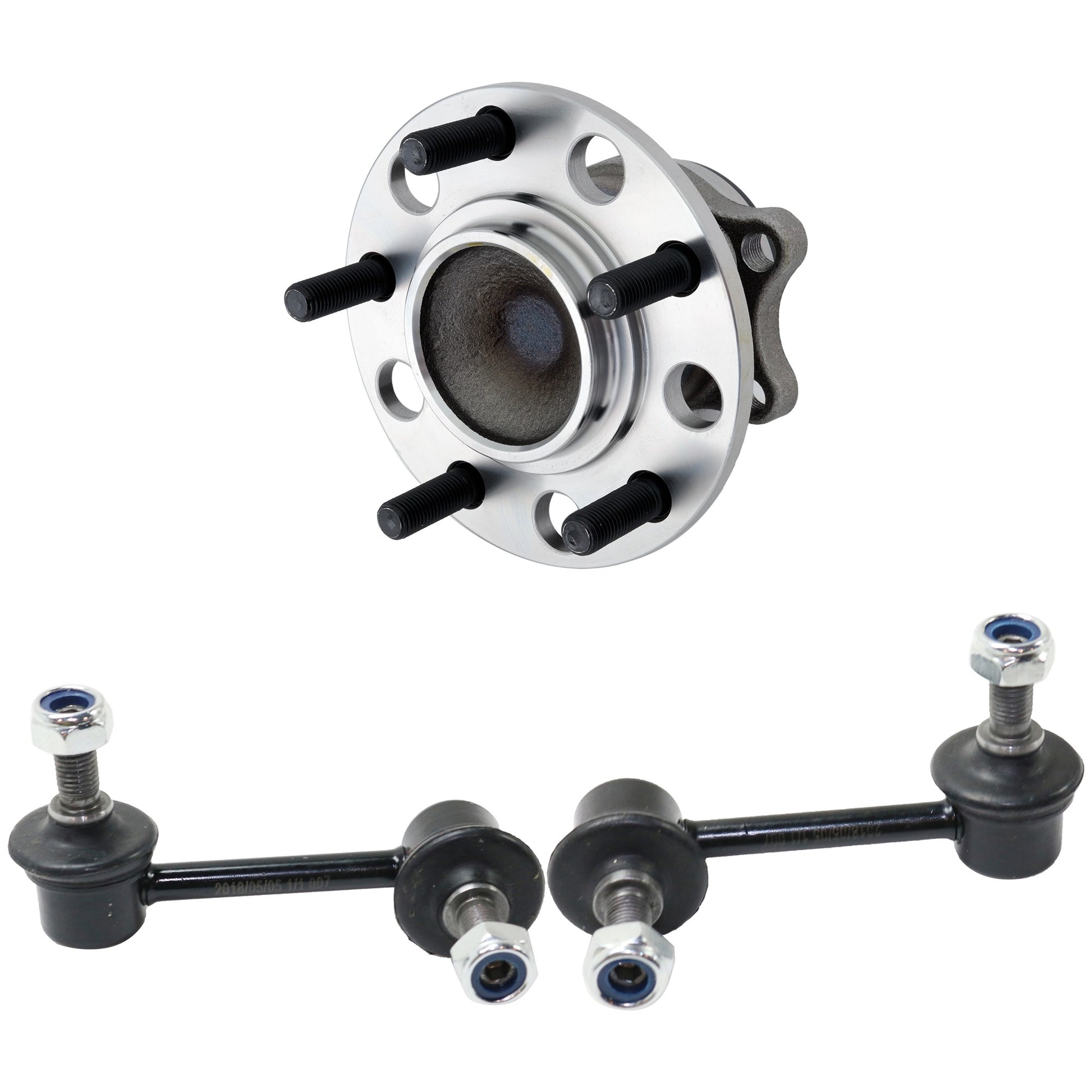 2-Wheel Set Rear, Driver and Passenger Side Wheel Hub, 5 Lugs, With Bearing, With Sensor, FWD, 2.4L, 4Cyl, Includes (2) Wheel Hub and (2) Sway Bar Link