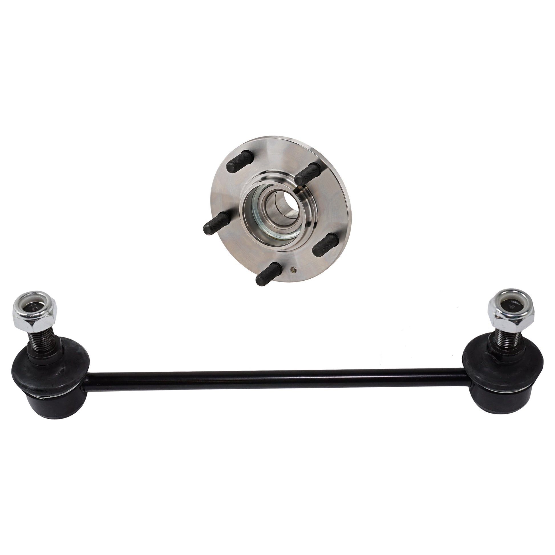 2-Wheel Set Rear, Driver and Passenger Side Wheel Hub, 5 Lugs, With Bearing, FWD, Includes (2) Wheel Hub and (2) Sway Bar Link