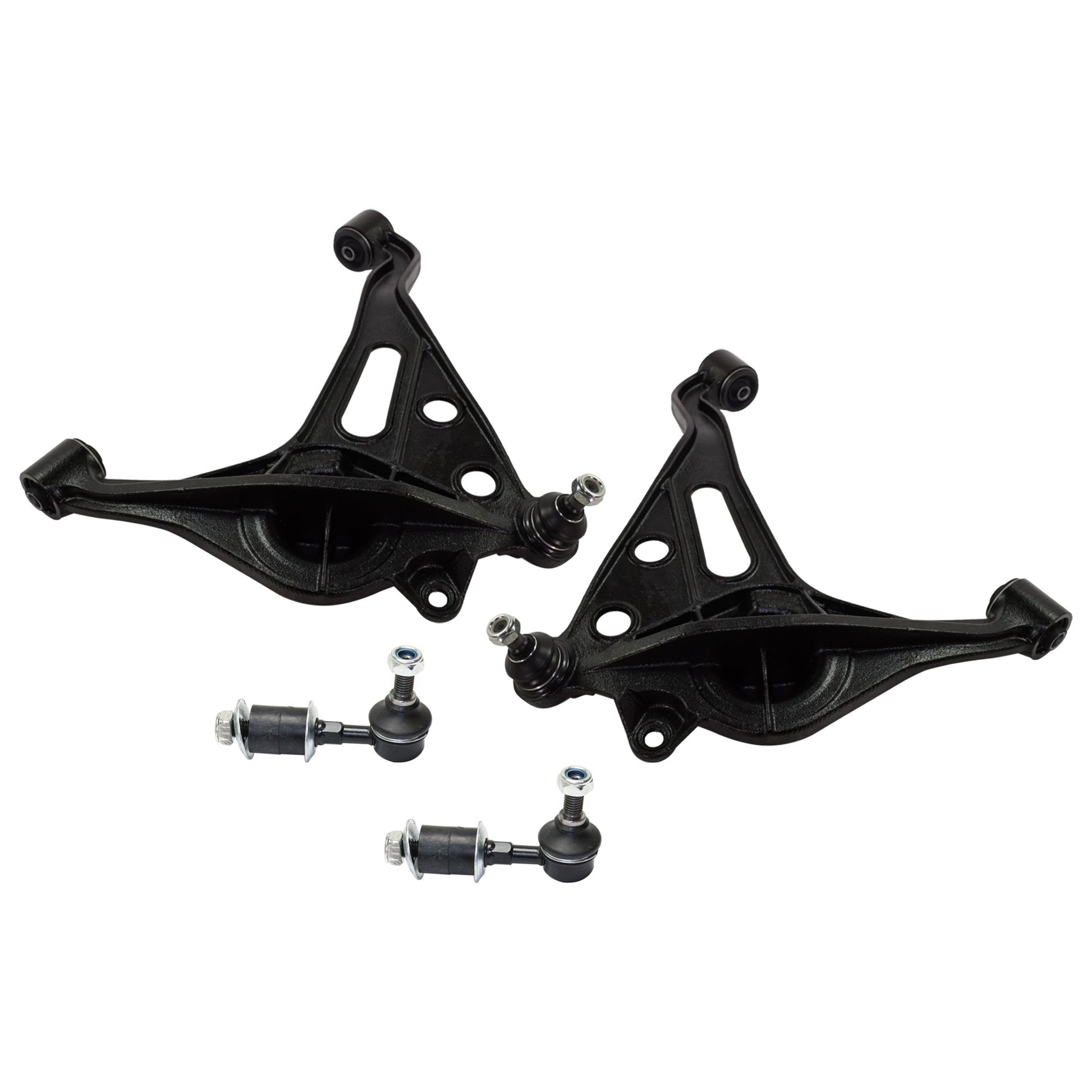 4-Piece Kit Front, Driver and Passenger Side, Lower Control Arms, Includes (2) Control Arm and (2) Sway Bar Link