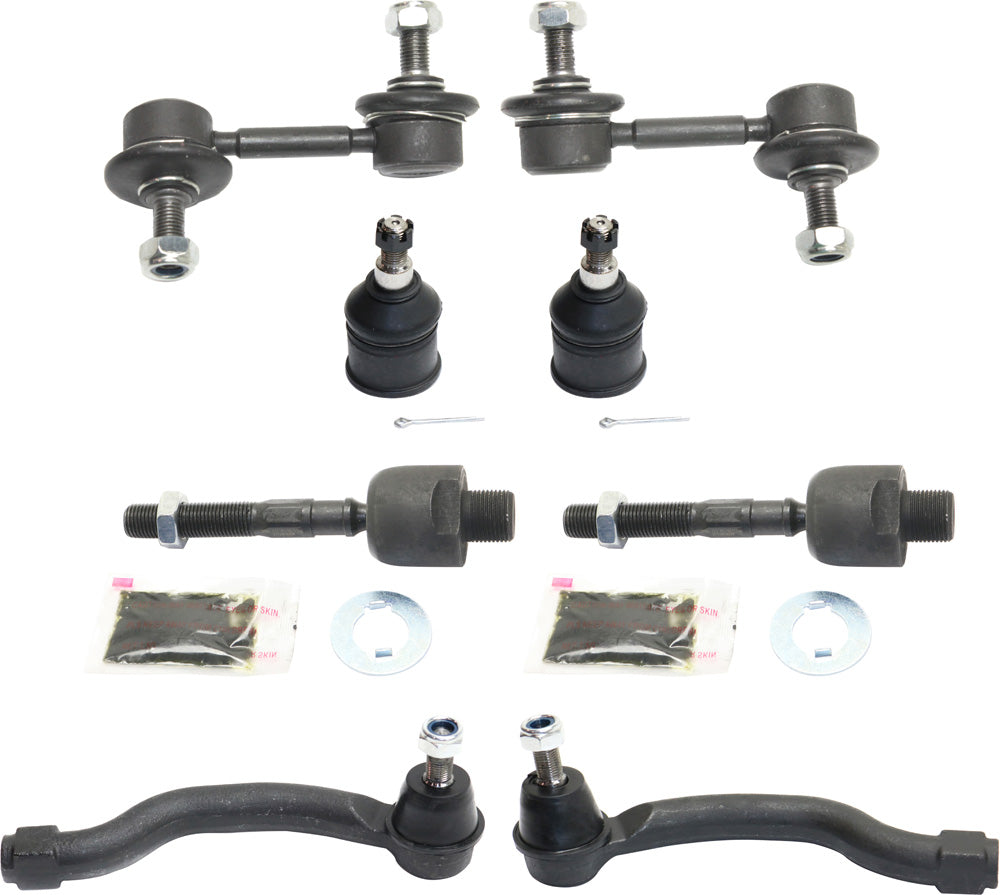 Комплект из 8 деталей для передней подвески со стороны водителя и пассажира, включает в себя (2) тяги стабилизатора поперечной устойчивости, (2) шаровые опоры и (4) наконечники рулевой тяги