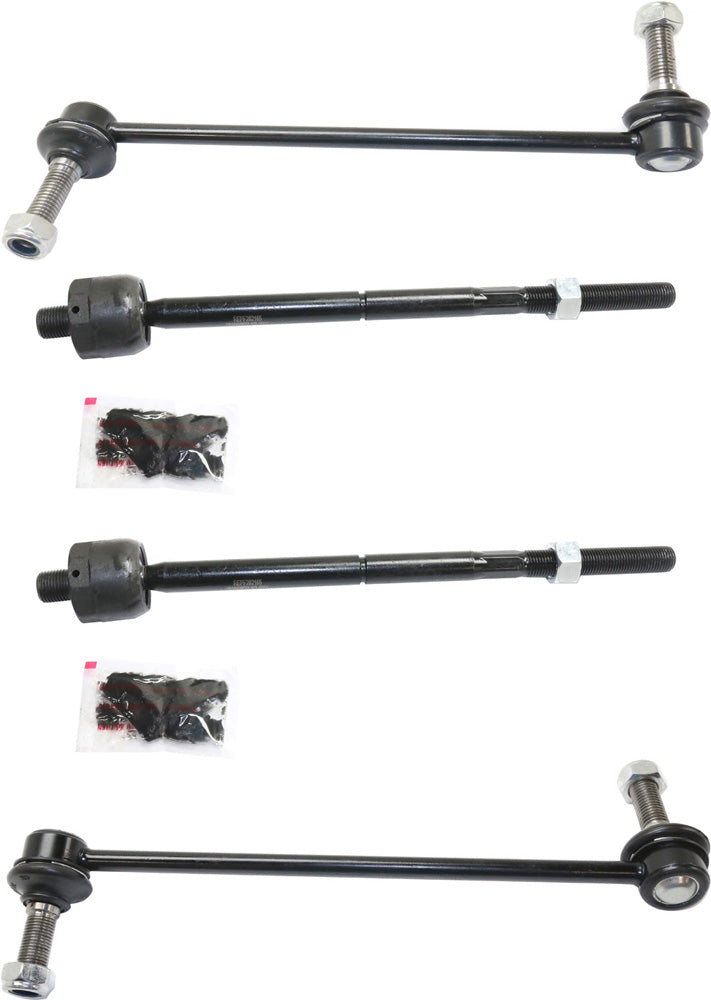 Комплект из 4 частей для передней подвески со стороны водителя и пассажира, включает (2) наконечника рулевой тяги и (2) тяги стабилизатора поперечной устойчивости