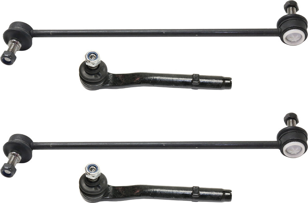 Комплект из 4 частей для передней подвески со стороны водителя и пассажира, включает (2) наконечника рулевой тяги и (2) тяги стабилизатора поперечной устойчивости