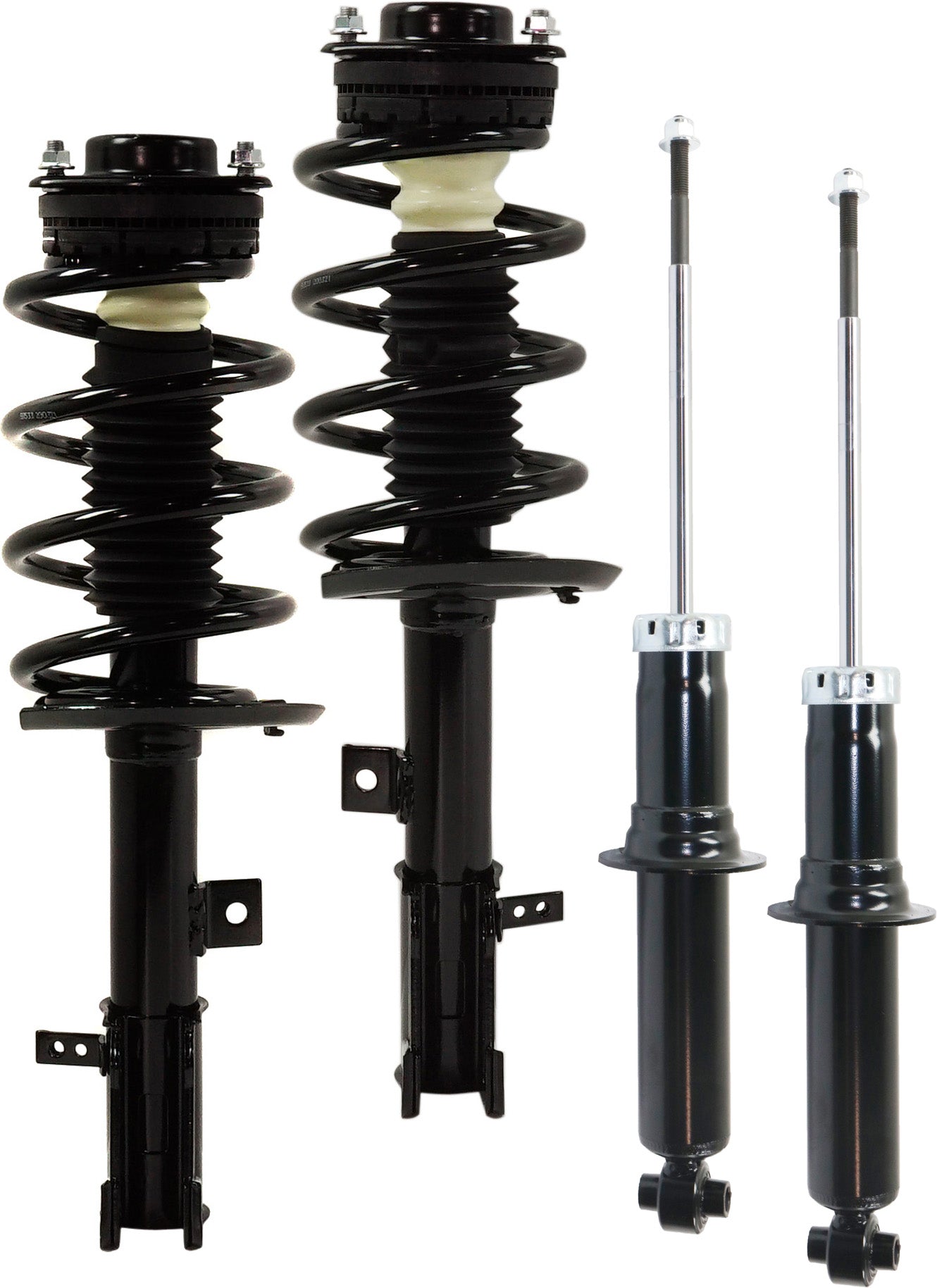 Передние и задние амортизаторы со стороны водителя и пассажира, а также полностью нагруженная стойка