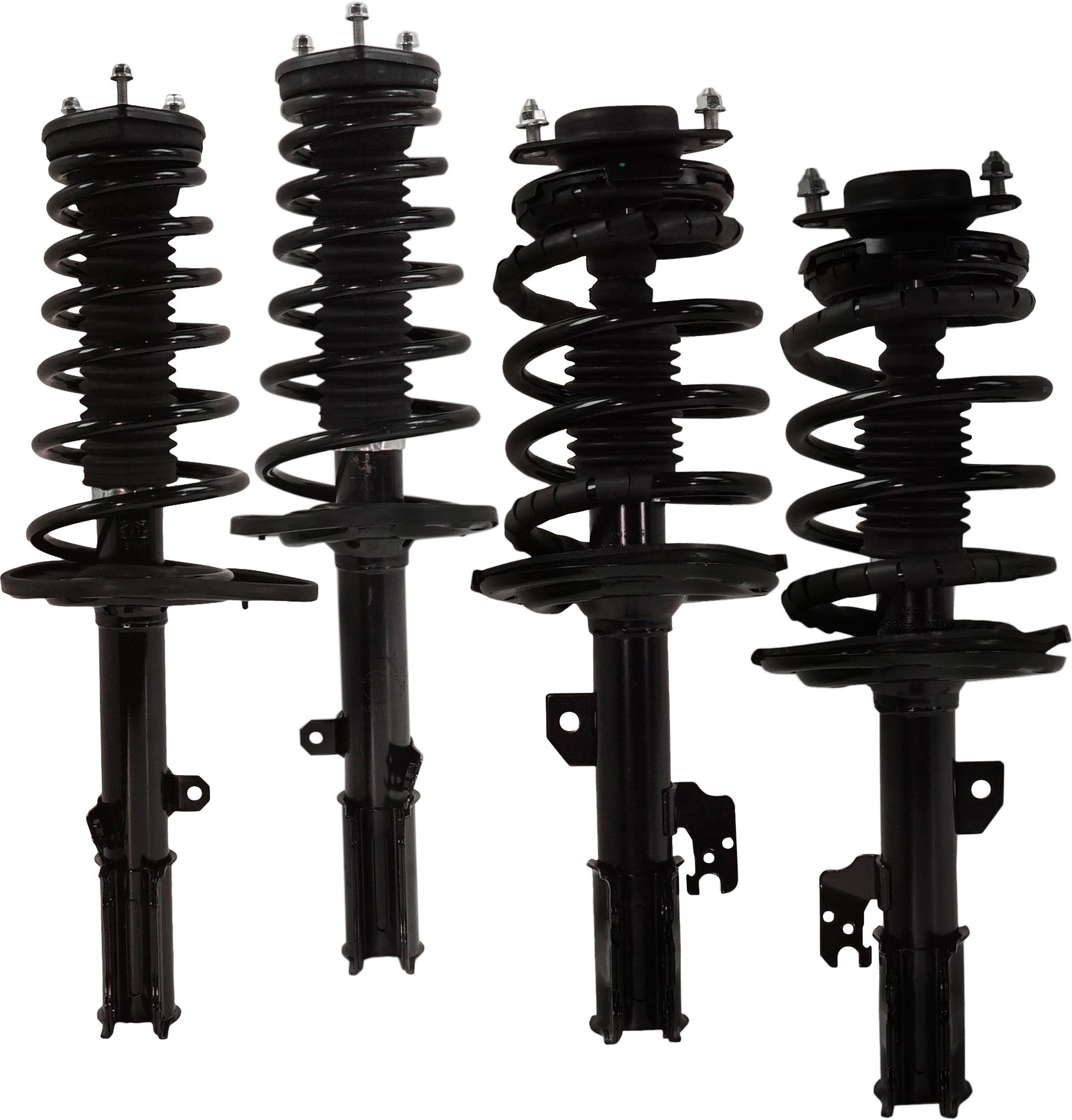 Передняя и задняя, со стороны водителя и пассажира, полностью нагруженная стойка
