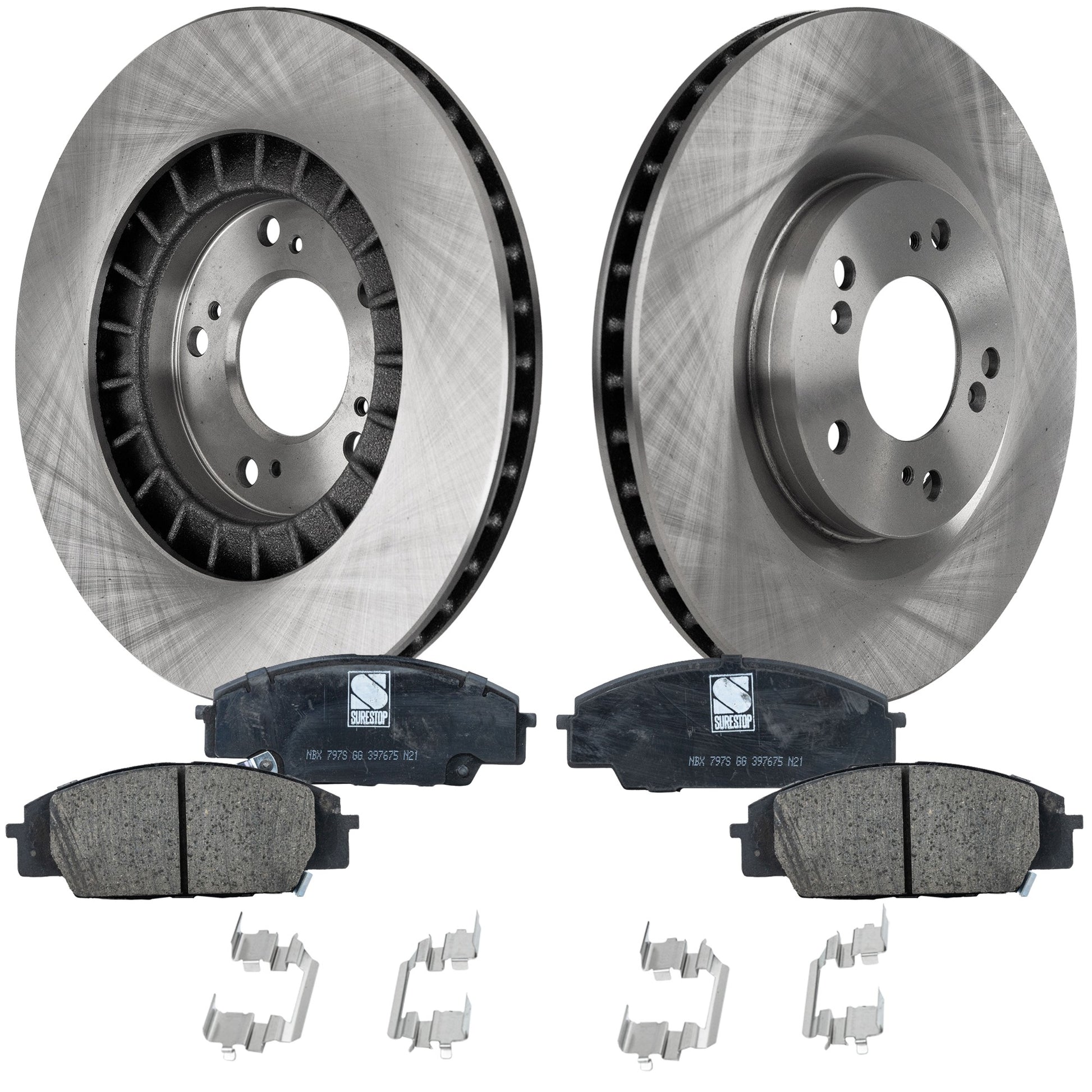 Комплект из 2 передних тормозных дисков и колодок, гладкая поверхность, 5 болтов, 299,72 мм, керамические, серия Pro-Line, включает в себя (2) тормозных диска и (1) комплект тормозных колодок