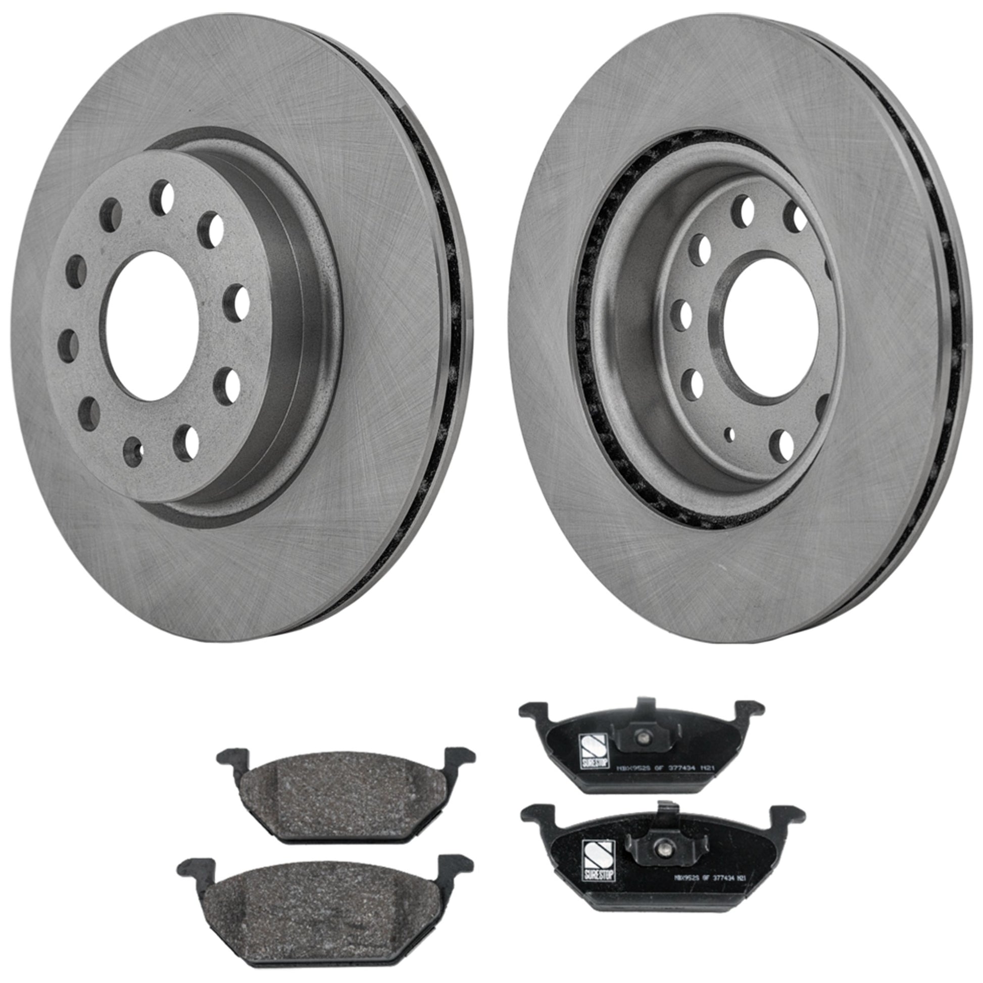 Комплект из 2 передних тормозных дисков и колодок, гладкая поверхность, 5 болтов, 279,91 мм, серия Organic Pro-Line, включает в себя (2) тормозных диска и (1) комплект тормозных колодок