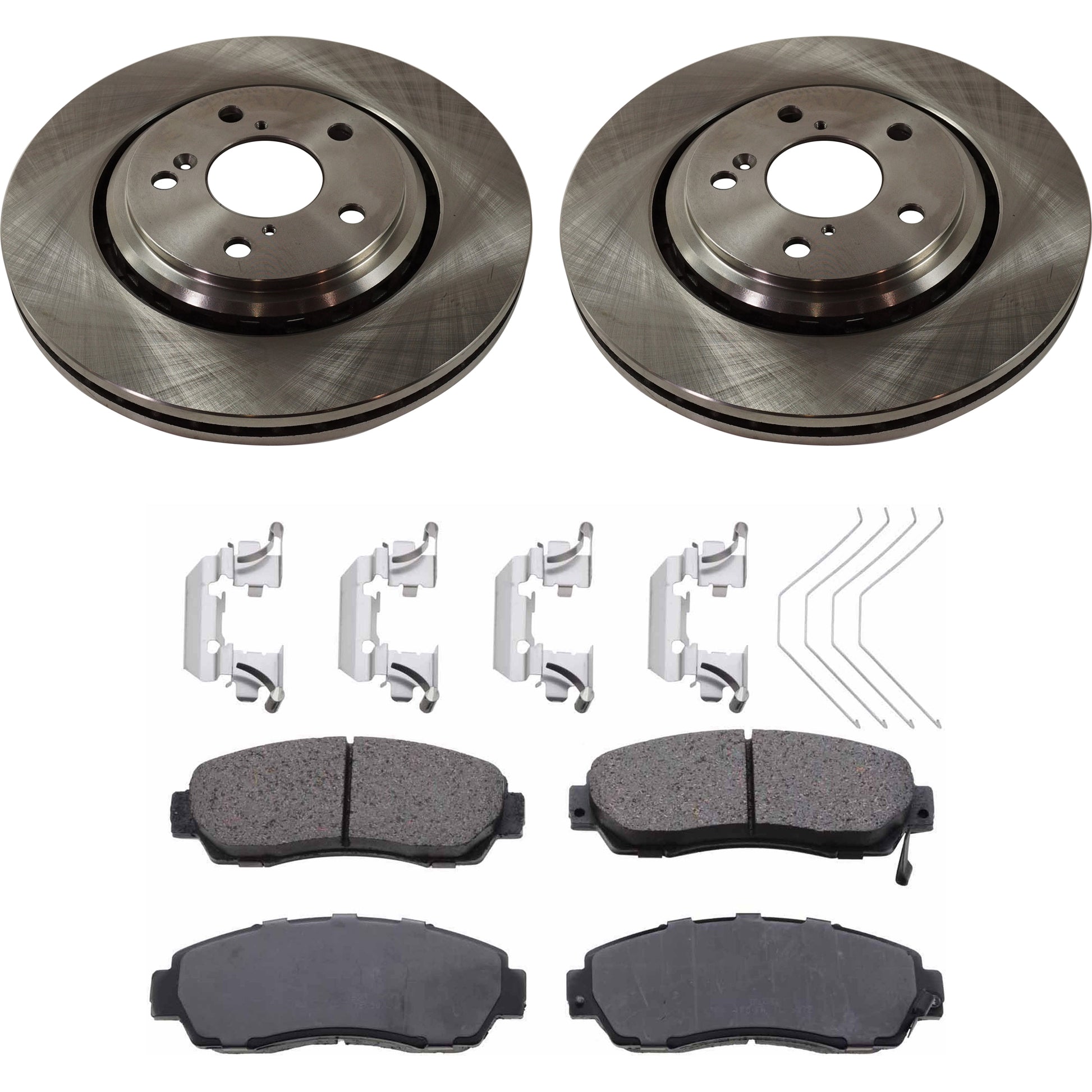 Комплект из 2 передних тормозных дисков и колодок, гладкая поверхность, 5 болтов, 320,04 мм, керамические, серия Pro-Line, включает в себя (1) комплект тормозных колодок и (2) тормозных диска
