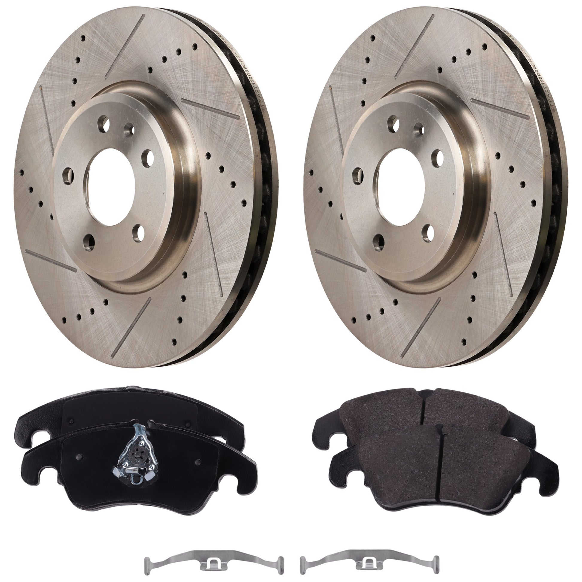 Комплект из 2 передних тормозных дисков и колодок, перфорированных и с насечками, 5 болтов, 320,04 мм, серия Organic Pro-Line, включает в себя (2) тормозных диска и (1) комплект тормозных колодок