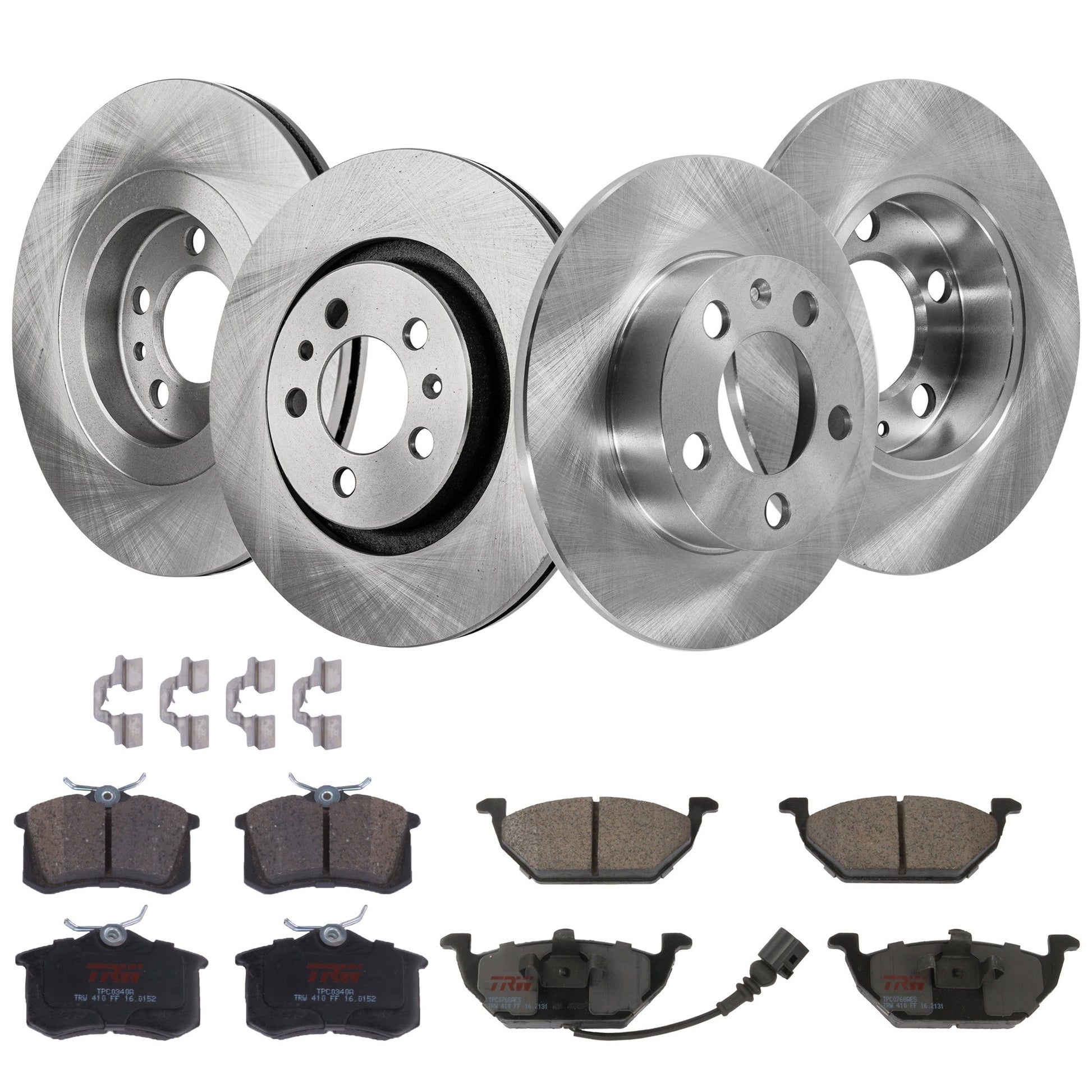 KIT-TRW101921-1160 4-Wheel Set Front and Rear Brake Disc and Pad Kit, Plain Surface 5 Lugs - Front; 5 Lugs - Rear Front-279.65 mm/Rear-232 mm Semi-metallic Premium Friction Series, Includes (4) Disc and (2) Pad Set