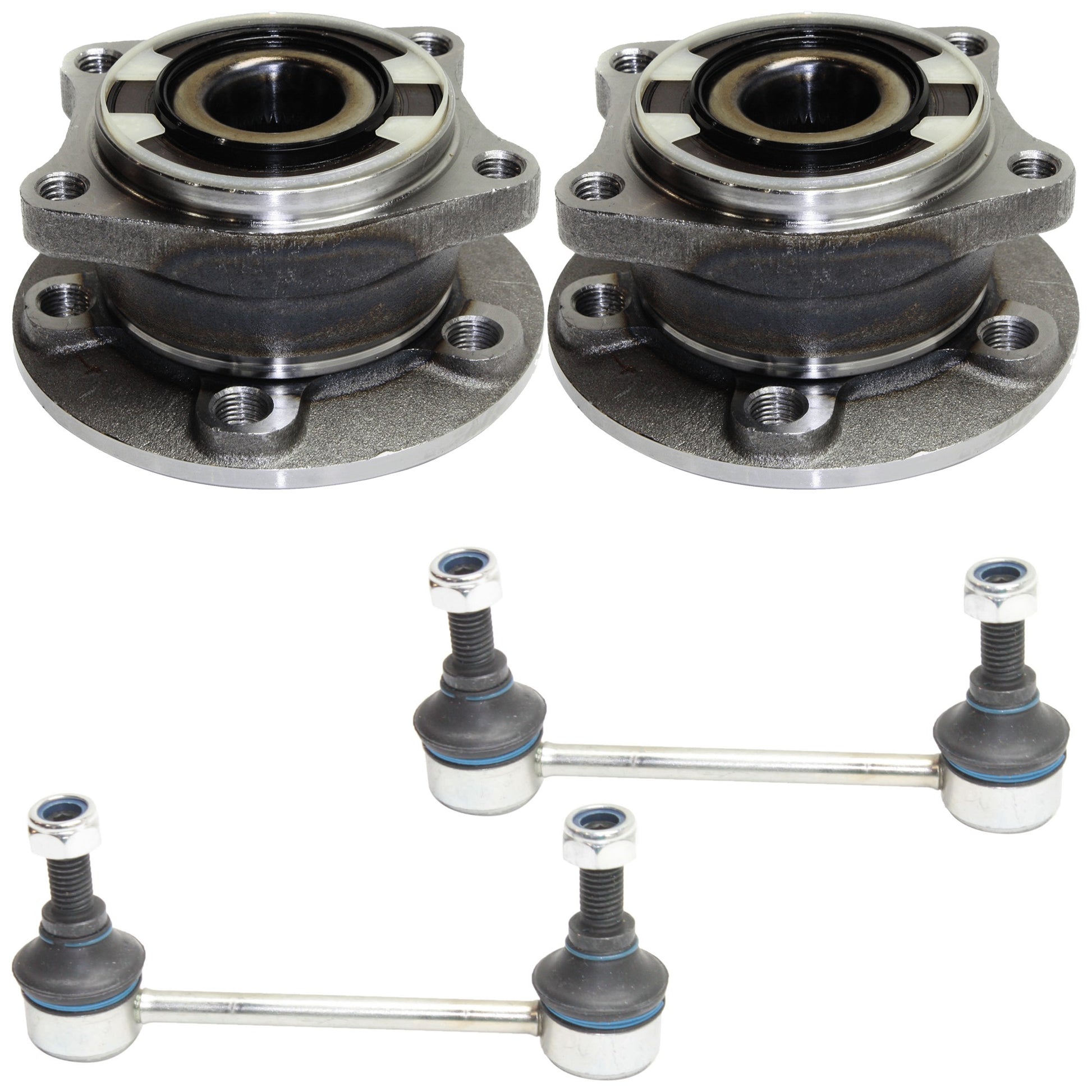 Комплект задней подвески из 4 частей, включает (2) тяги стабилизатора поперечной устойчивости и (2) ступицы колеса