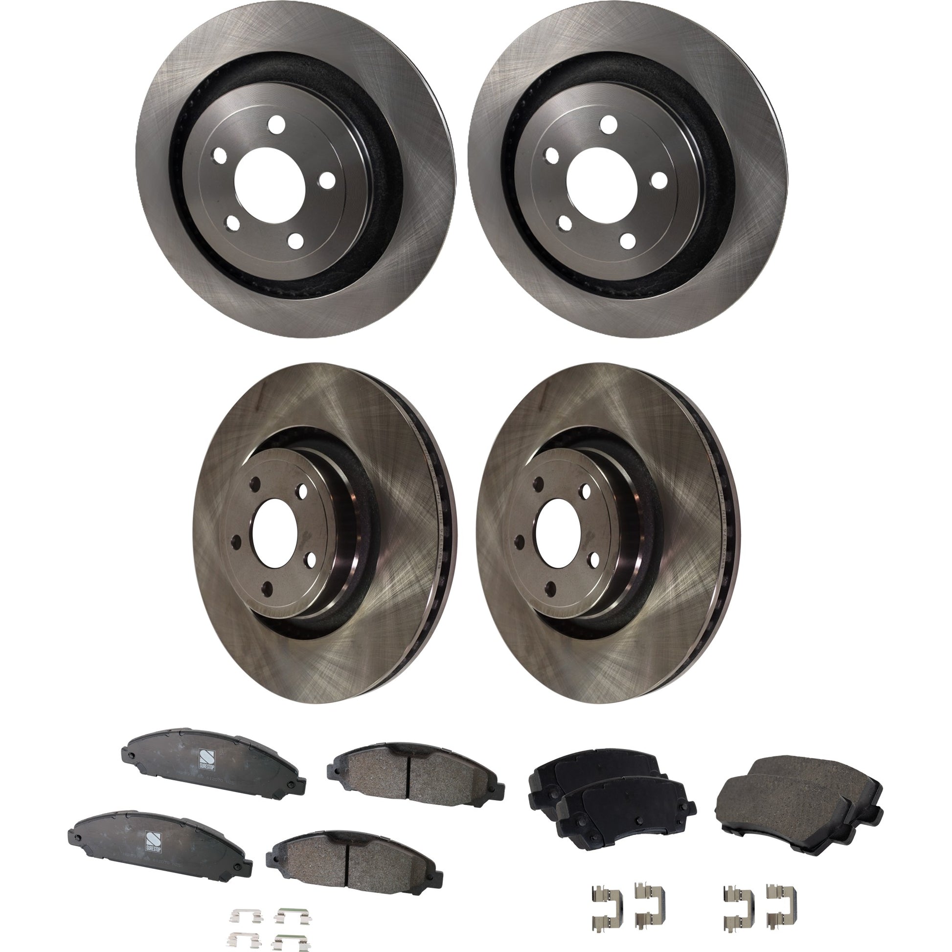 Комплект из 4 тормозных дисков и колодок для передних и задних колес, гладкая поверхность, 5 болтов, передние - 352 мм / задние - 330 мм, включает в себя (4) тормозных диска и (2) тормозных колодок