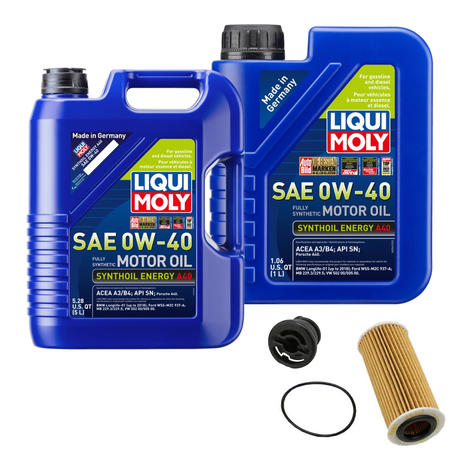 KIT-070224-648 Комплект из 4 предметов, синтетическое моторное масло, оригинальный комплект из 4 предметов, Audi, Volkswagen, включает (1) пробку для слива масла, (2) моторного масла и (1) масляный фильтр