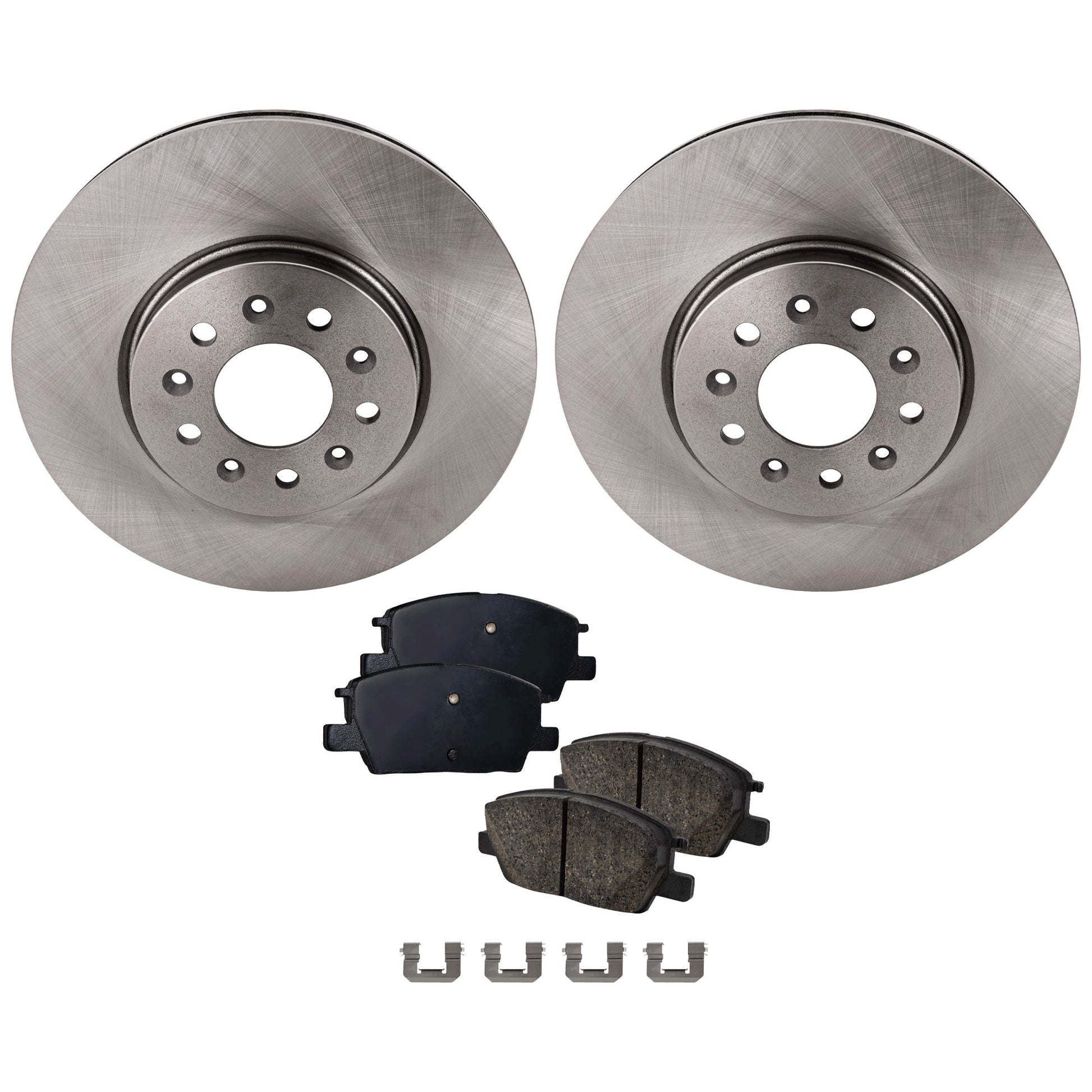Комплект из 2 передних тормозных дисков и колодок, гладкая поверхность, 5 выступов, 321 мм, включает в себя (1) комплект тормозных колодок и (2) тормозных диска