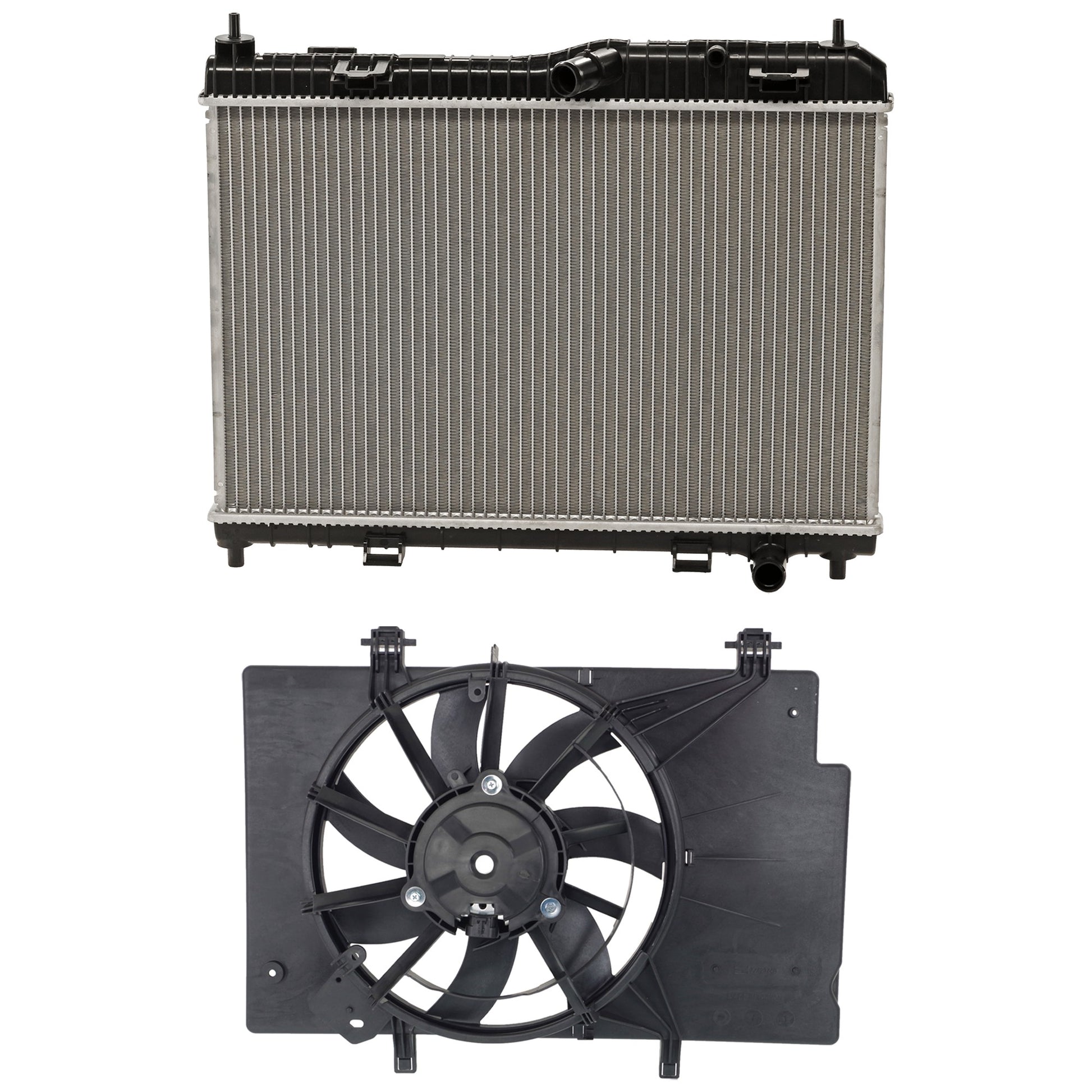 Комплект радиатора из 2 частей, 1,6 л, 4 цилиндра, включает в себя (1) радиатор и (1) блок вентилятора охлаждения