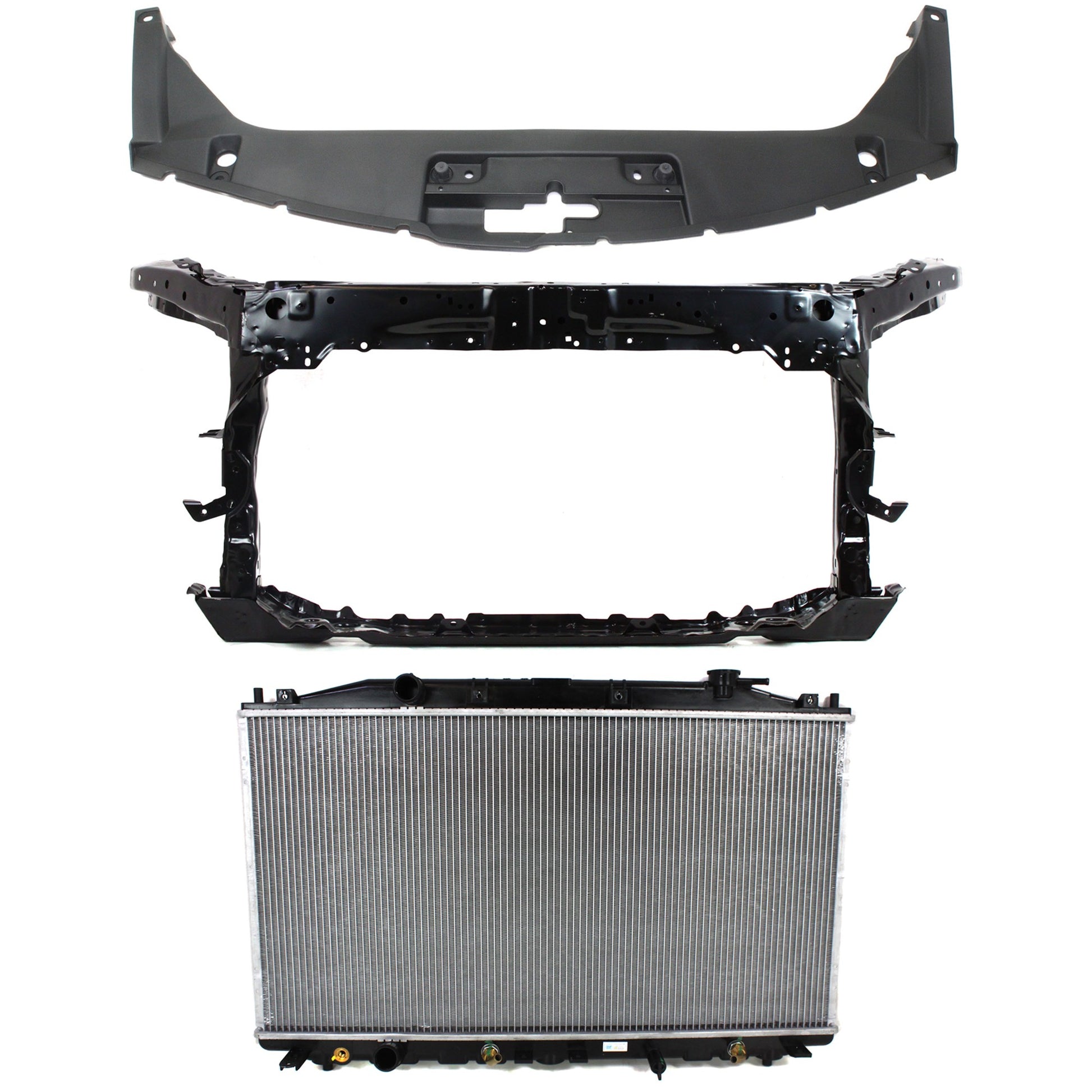 Комплект радиатора из 3 частей, 4 цилиндра, 2,4 л, купе, включает в себя (1) радиатор, (1) опору радиатора и (1) крышку опоры радиатора