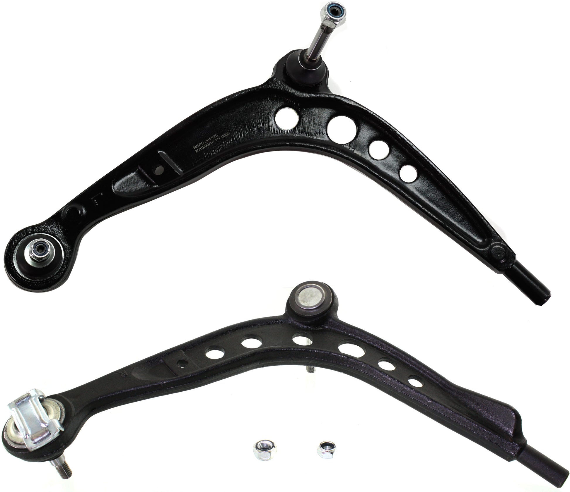 Передняя часть, сторона водителя и пассажира, нижние рычаги управления