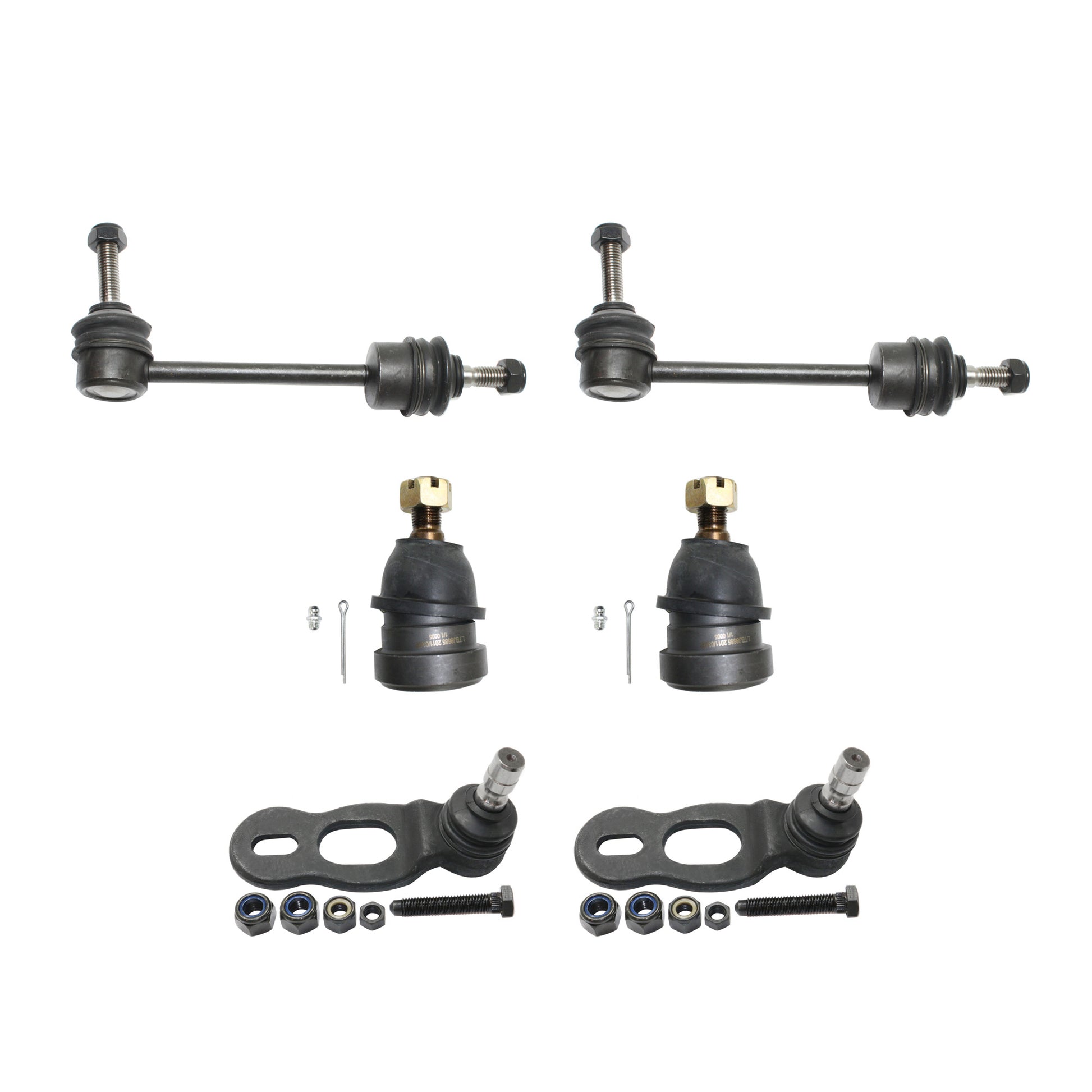 Комплект из 6 деталей для передней подвески со стороны водителя и пассажира, включает (4) шаровых шарнира и (2) тяги стабилизатора поперечной устойчивости