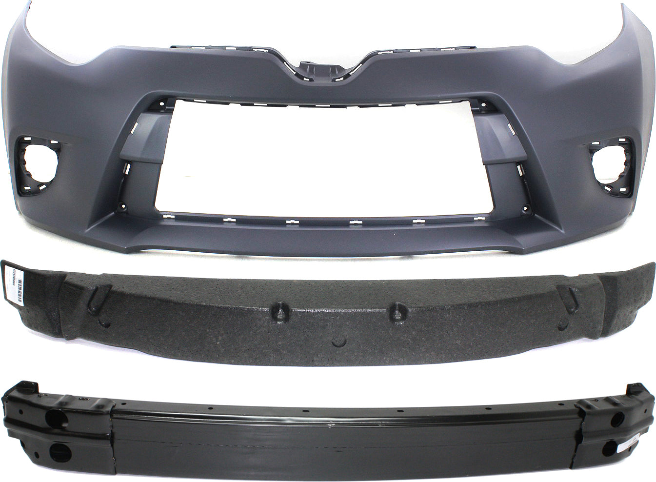 Комплект из 3-х частей: передний грунтованный бампер, подходит только для моделей CE/L/LE/LE Eco, без хромированной окантовки решетки радиатора, включает в себя (1) амортизатор бампера, (1) накладку бампера и (1) усилитель бампера